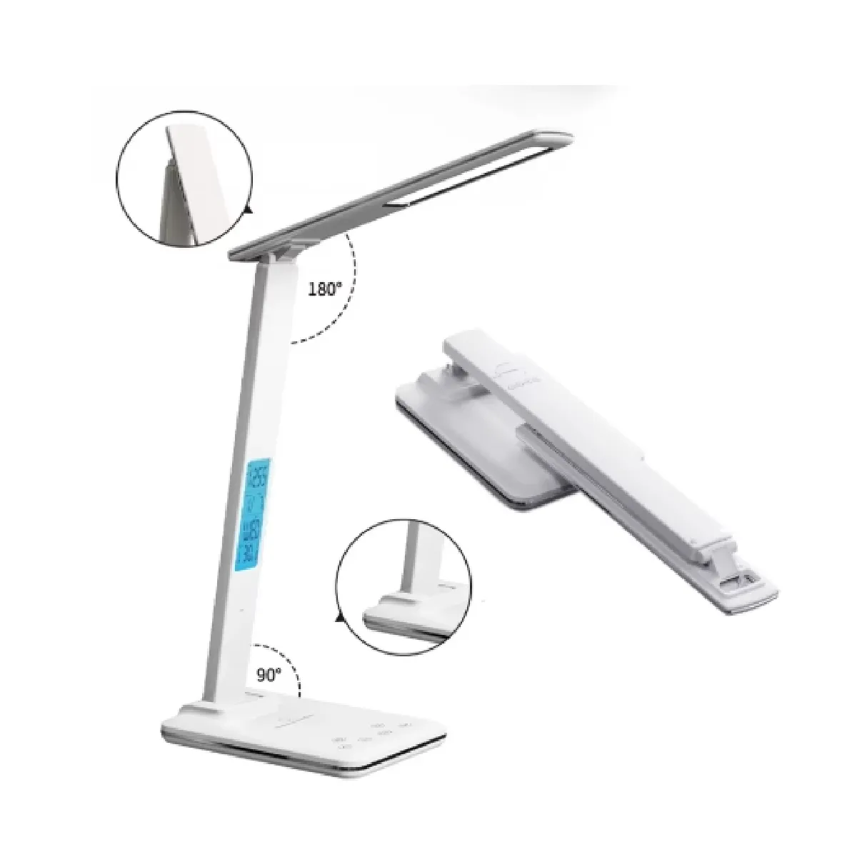 Découvrez notre lampe de bureau design, idéale pour éclairer votre espace de travail avec style et fonctionnalité. Équipée d'une base E26 médium, cette lampe offre un éclairage LED économe en énergie, disponible en blanc froid, blanc chaud, blanc naturel et lumière naturelle. Sa hauteur de 40 cm, sa profondeur de 28 cm et sa base de 18 cm en font un objet à la fois pratique et esthétique. La lampe est également pliable, ce qui permet de gagner de la place et de l'adapter à vos besoins. Elle dispose d'un port de charge USB et d'un chargeur sans fil rapide intégré, d'une fonction LCD avec horloge numérique, thermomètre et fonction de synchronisation. La luminosité est réglable sur 5 niveaux, offrant une expérience d'éclairage personnalisée. Conçue pour une utilisation intérieure, cette lampe de bureau est recommandée pour le travail, la lecture, la détente et la recharge de votre téléphone. Elle est livrée avec un adaptateur 5V/2A et est disponible en noir ou en blanc.