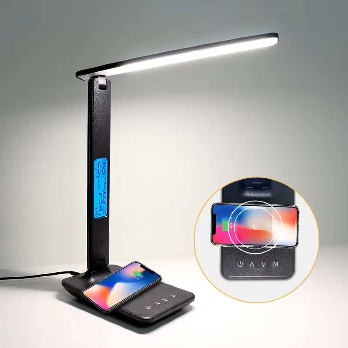 Lampe de Bureau Pliante USB, Tactile, Intensité Variable, Heure, Température, Réveil, Chargeur Téléphone |