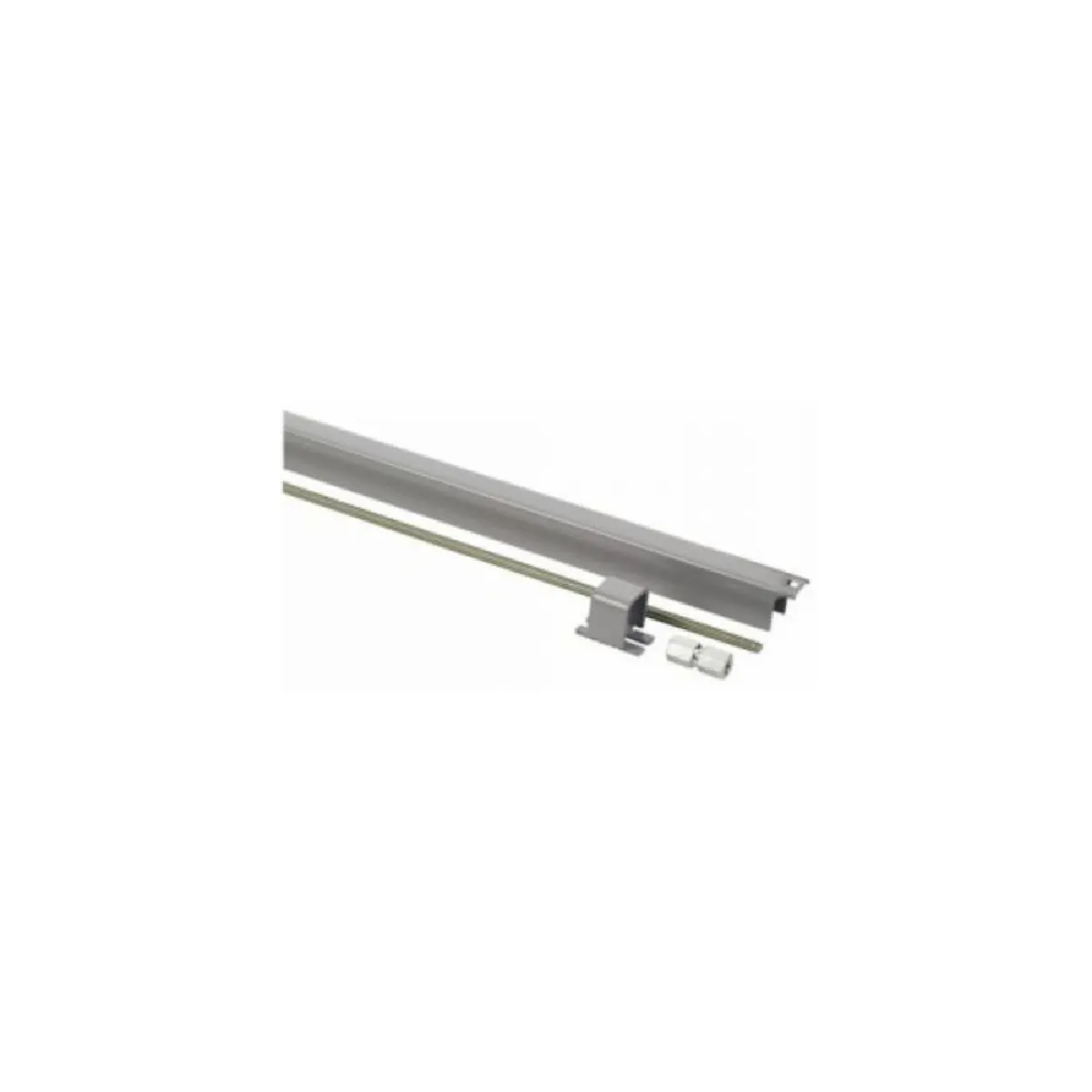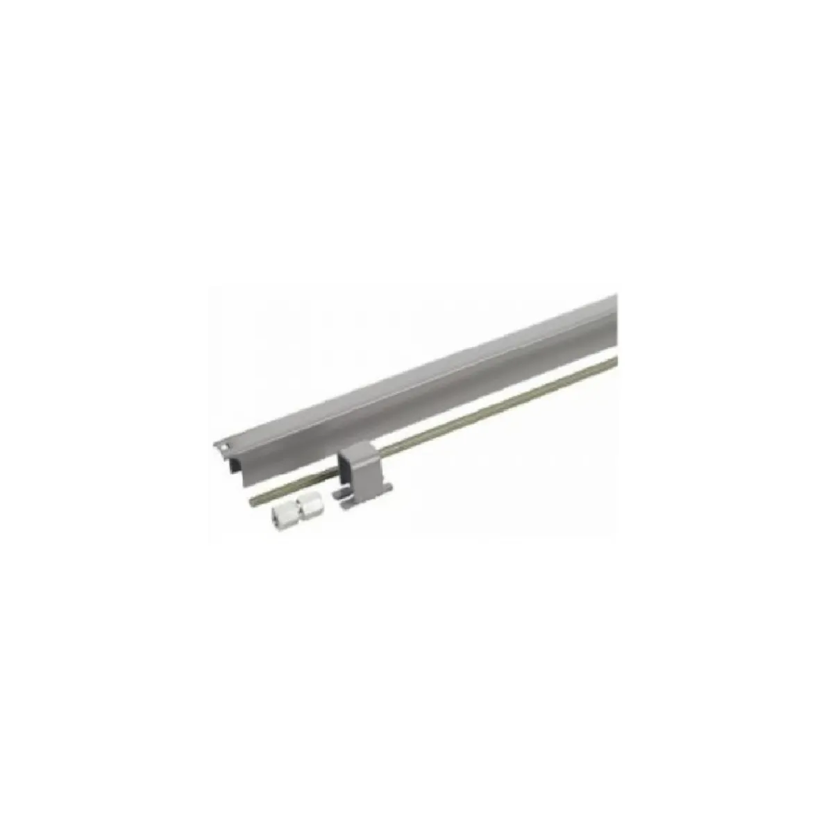 - Rail de montage long en métal finition mate (gris) avec profil en U pour guidage et fixation discrète.