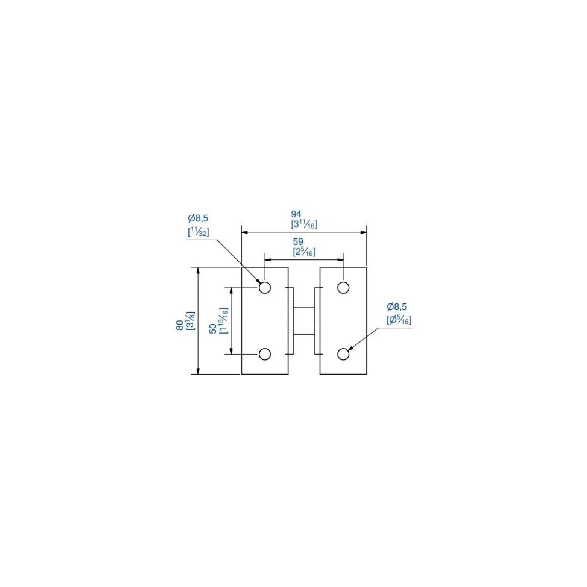 - Diamètre des trous de la plaque de fixation : Ø 8,5 mm.