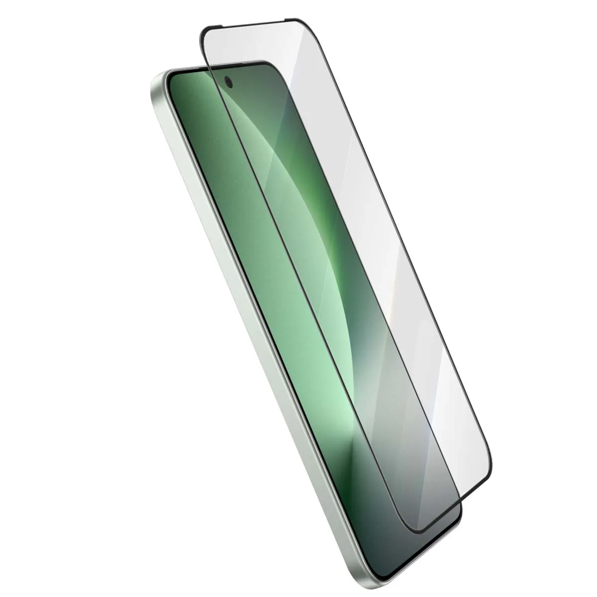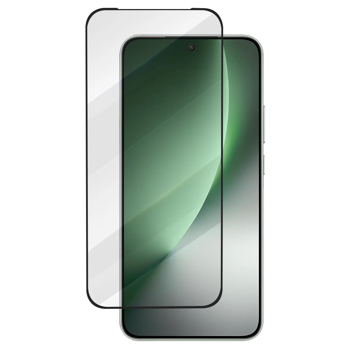 Vue isolée du verre trempé avec ses bords noirs arrondis