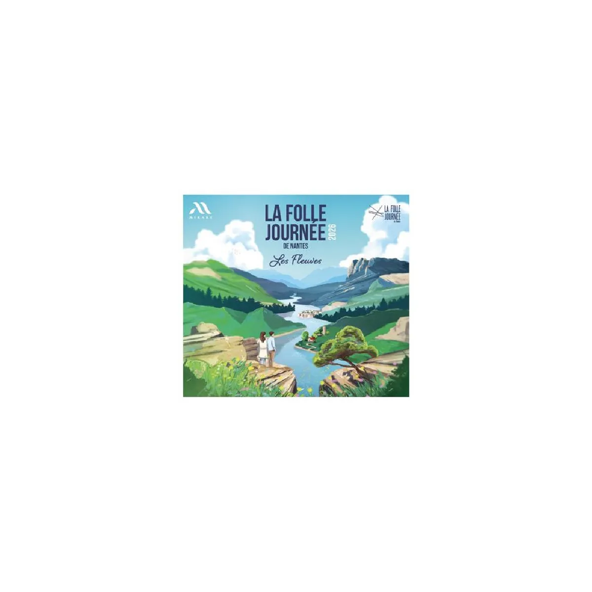 - Visuel de couverture : illustration paysagère centrée représentant un fleuve traversant une vallée, palette dominée par bleu ciel, verts, beige et blanc, avec livret thématique inclus.