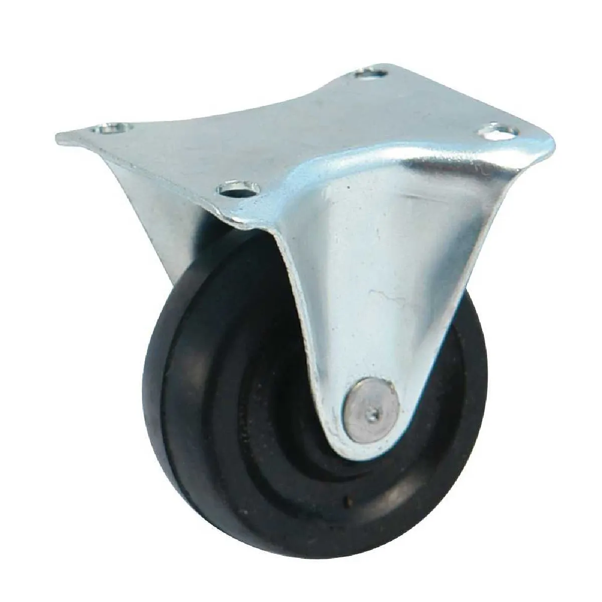 AVL Roulette fixe à platine rectangulaire, roue 66 mm caoutchouc noir, support acier zingué, hauteur 53 mm
