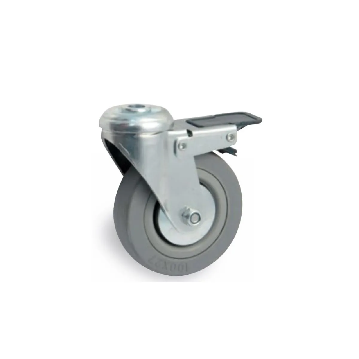 AVL Roulette pivotante 50 mm avec œillet de fixation et frein simple-action, roue caoutchouc gris non-marking, châssis acier zingué
