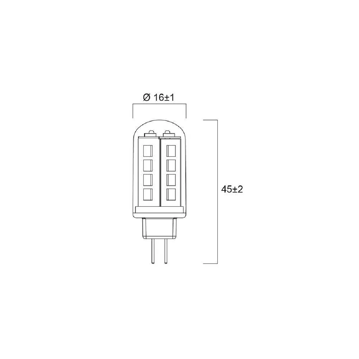 - Base G4 bi-pin : insertion verticale e0 deux broches droites, compatible avec douilles G4 standard.