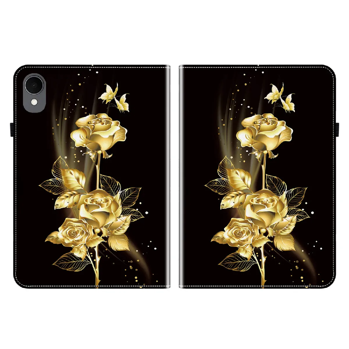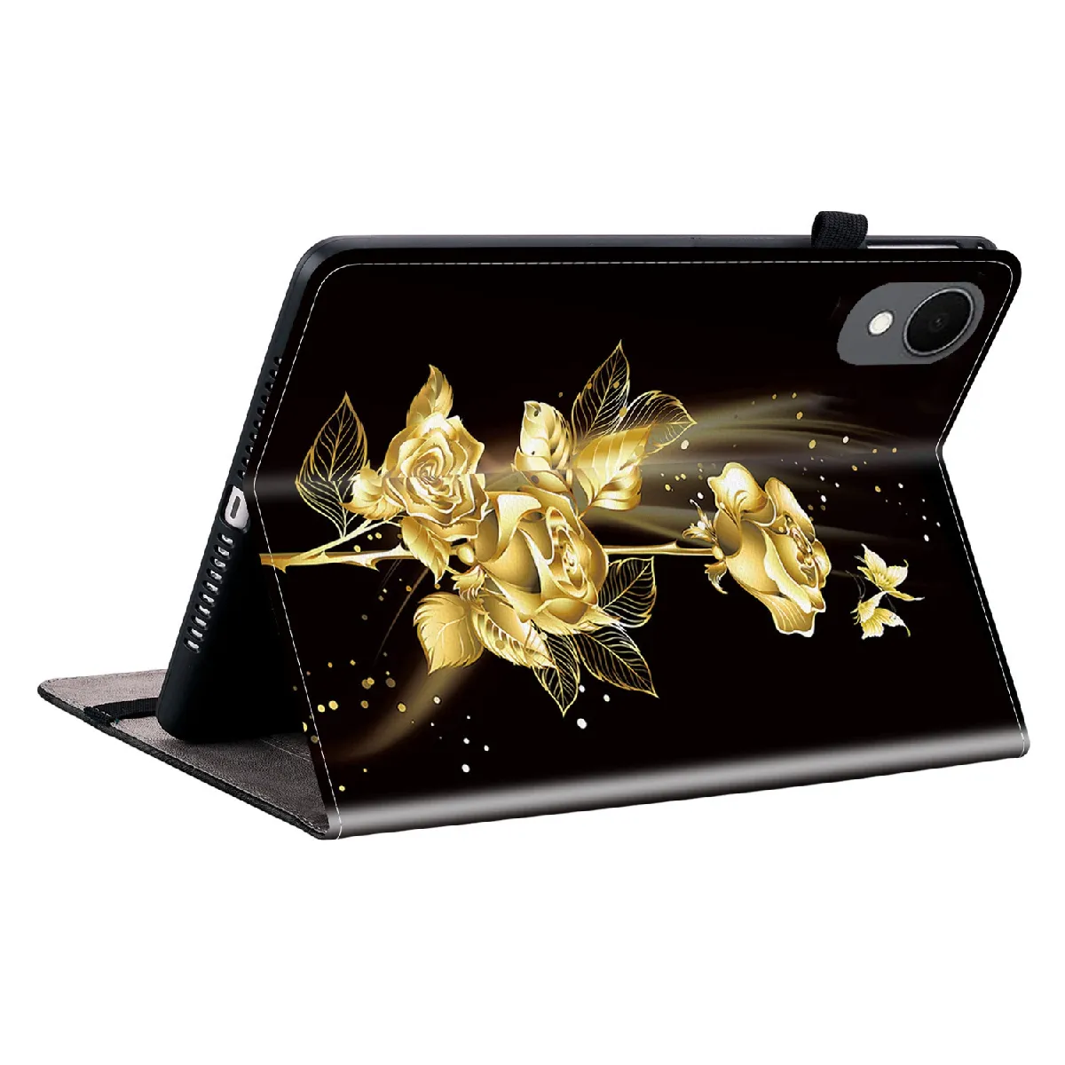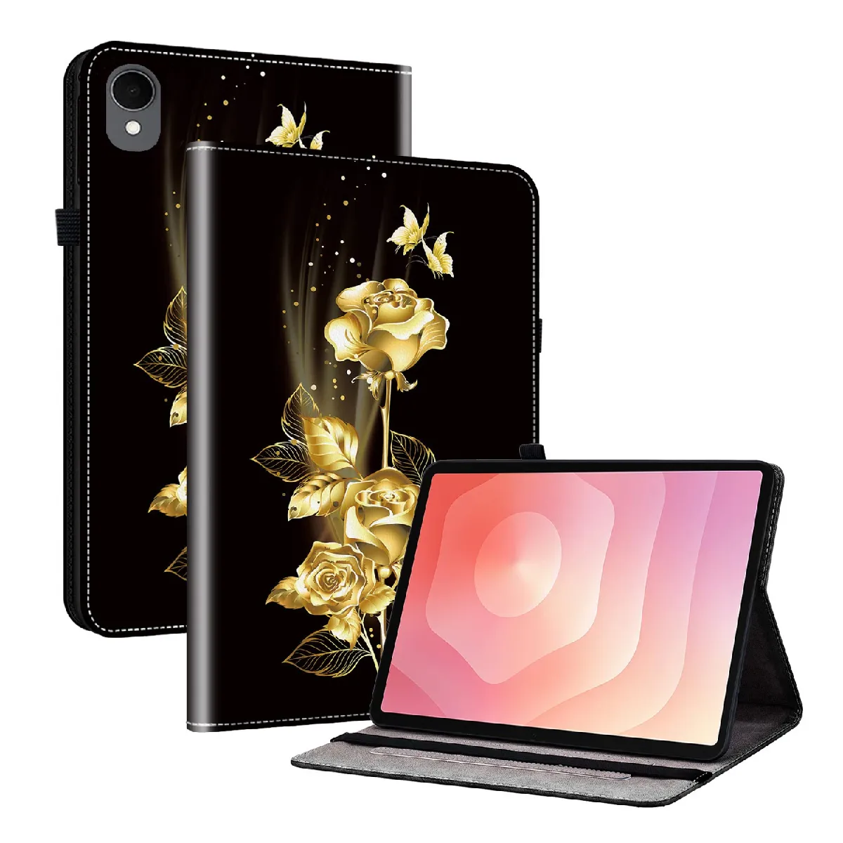 Housse pour Samsung Galaxy Tab S11 Motif Floral avec Support et Porte-Stylet TPU Souple, Noir Or |
