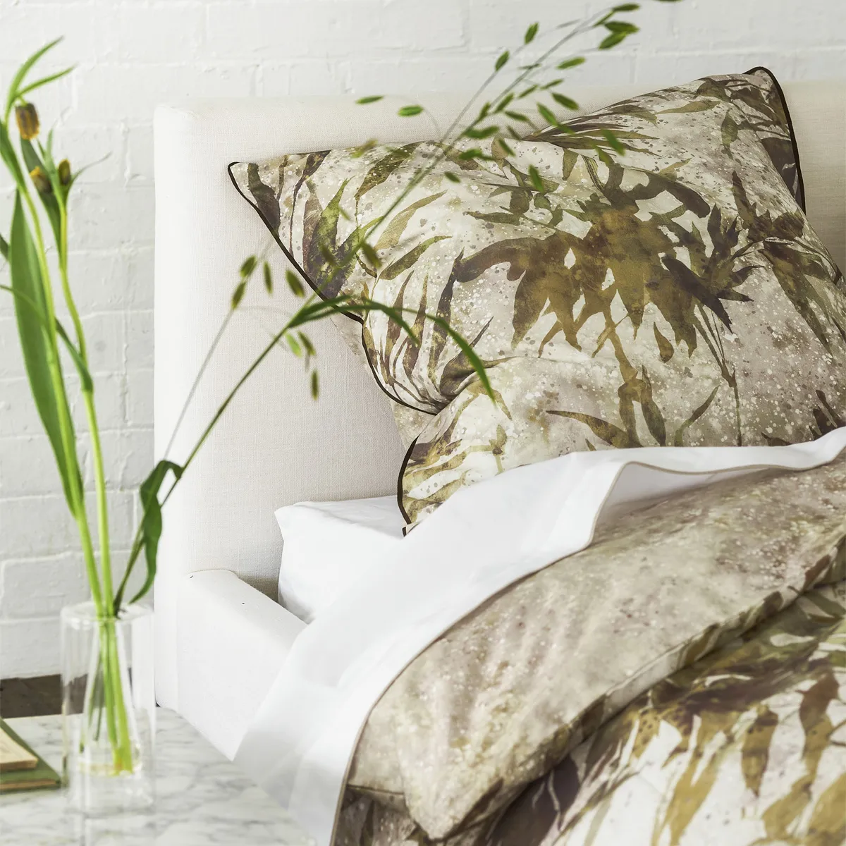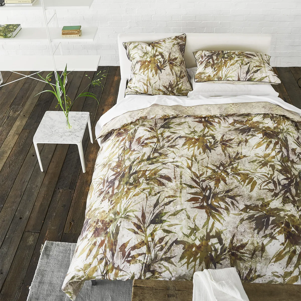 Le modèle Jardin Chinois, en percale de coton, a cet élégant motif qui s'inspire de l'art Asiatique du XIXe siècle. De subtils coups de pinceaux dévoilent un vibrant jardin de bambou, rehaussé par un fond délicatement moucheté. Ce linge de lit aux tonalités chaudes et apaisantes est imprimé numériquement sur une percale de coton.