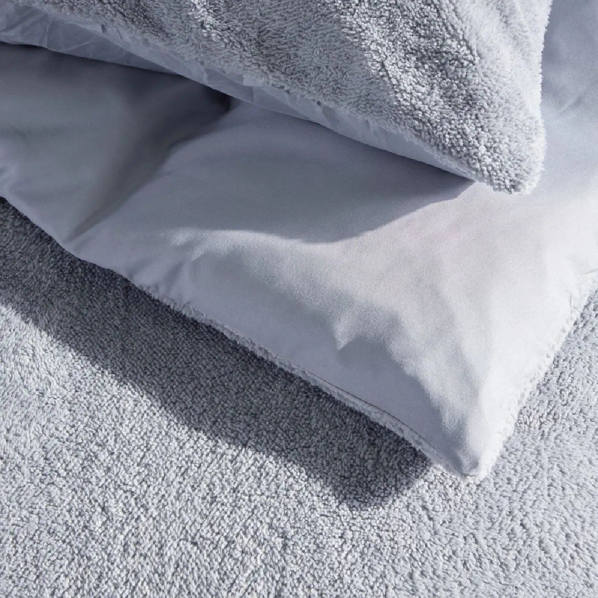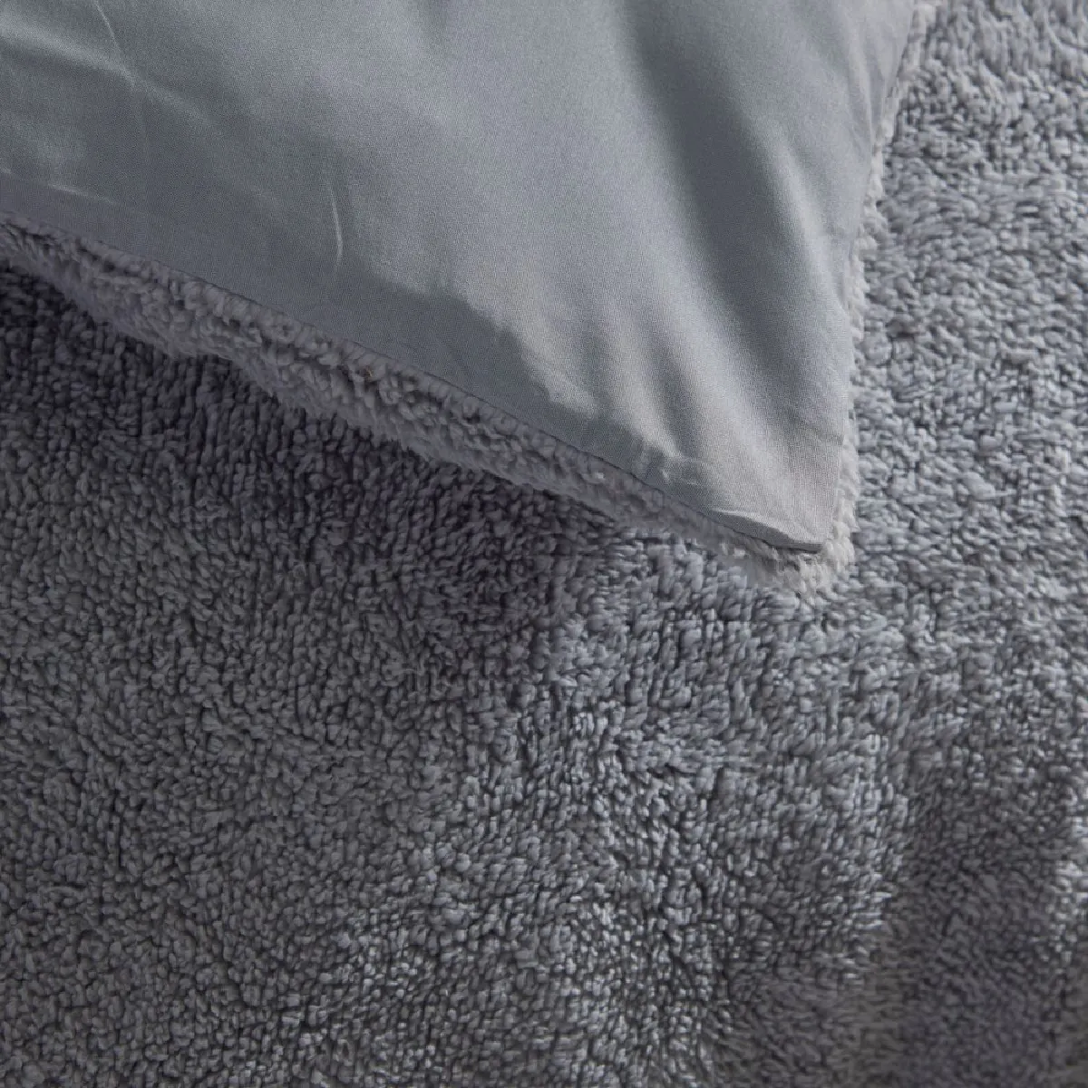 TODAY Teddy Parure de housse de couette bi-matière 240x220 cm avec 2 taies 63x63 cm - Gris
