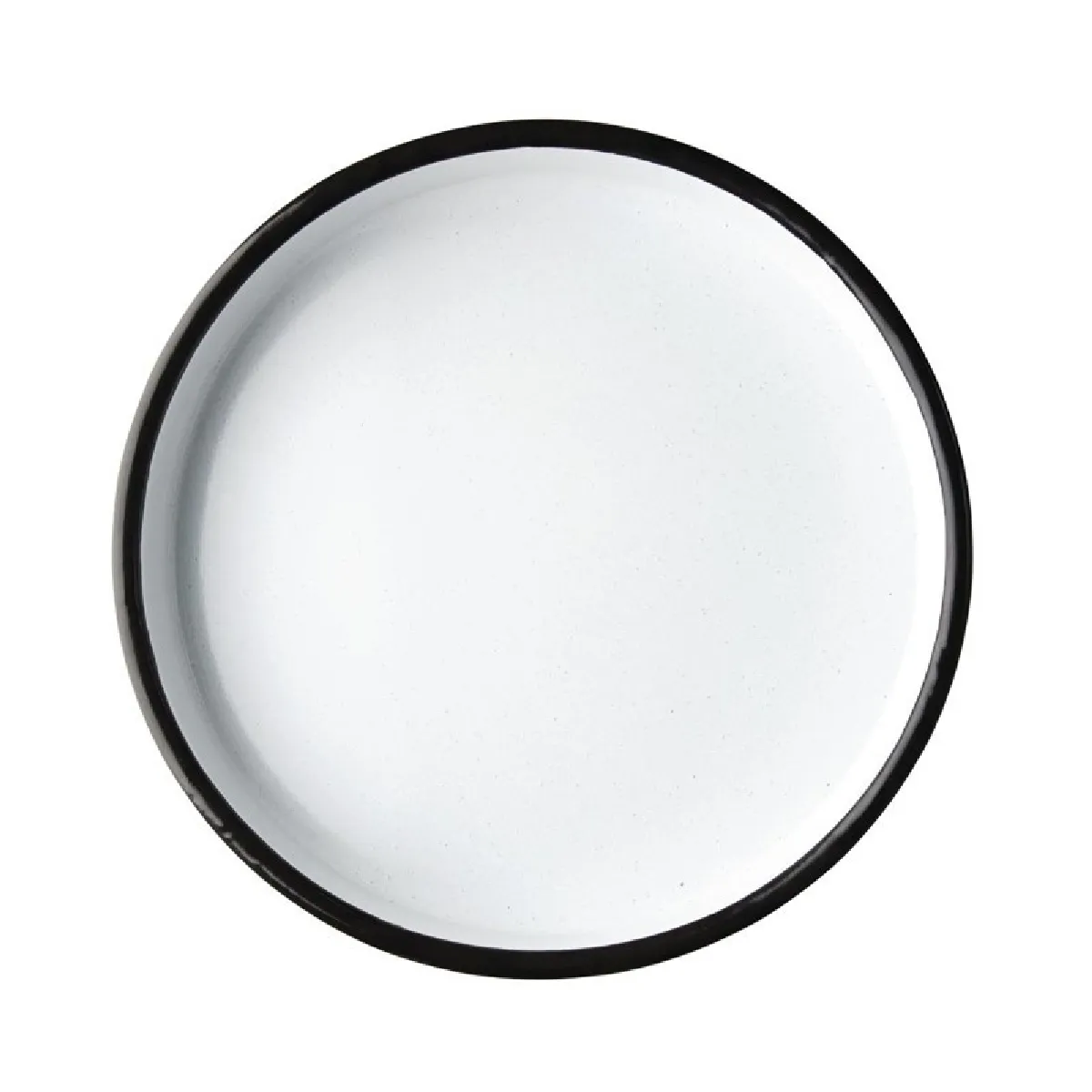 Plat de service émaillé Olympia 320mm Plat de service bleu et blanc avec un bord noir, idéal pour un style bistro-retro. Ces plats sont fabriqués en acier inoxydable épais et sont enrobés d'un revêtement très durable en verre fondu pour une finition lisse au toucher. Le revêtement est résistant aux produits chimiques, permettant au plat d'être lavé au lave-vaisselle. L'émail bleu et blanc rétro classique Les éclats et imperfections apportent un caractère unique à chaque pièce Revêtement de verre fondu Résiste à la chaleur
