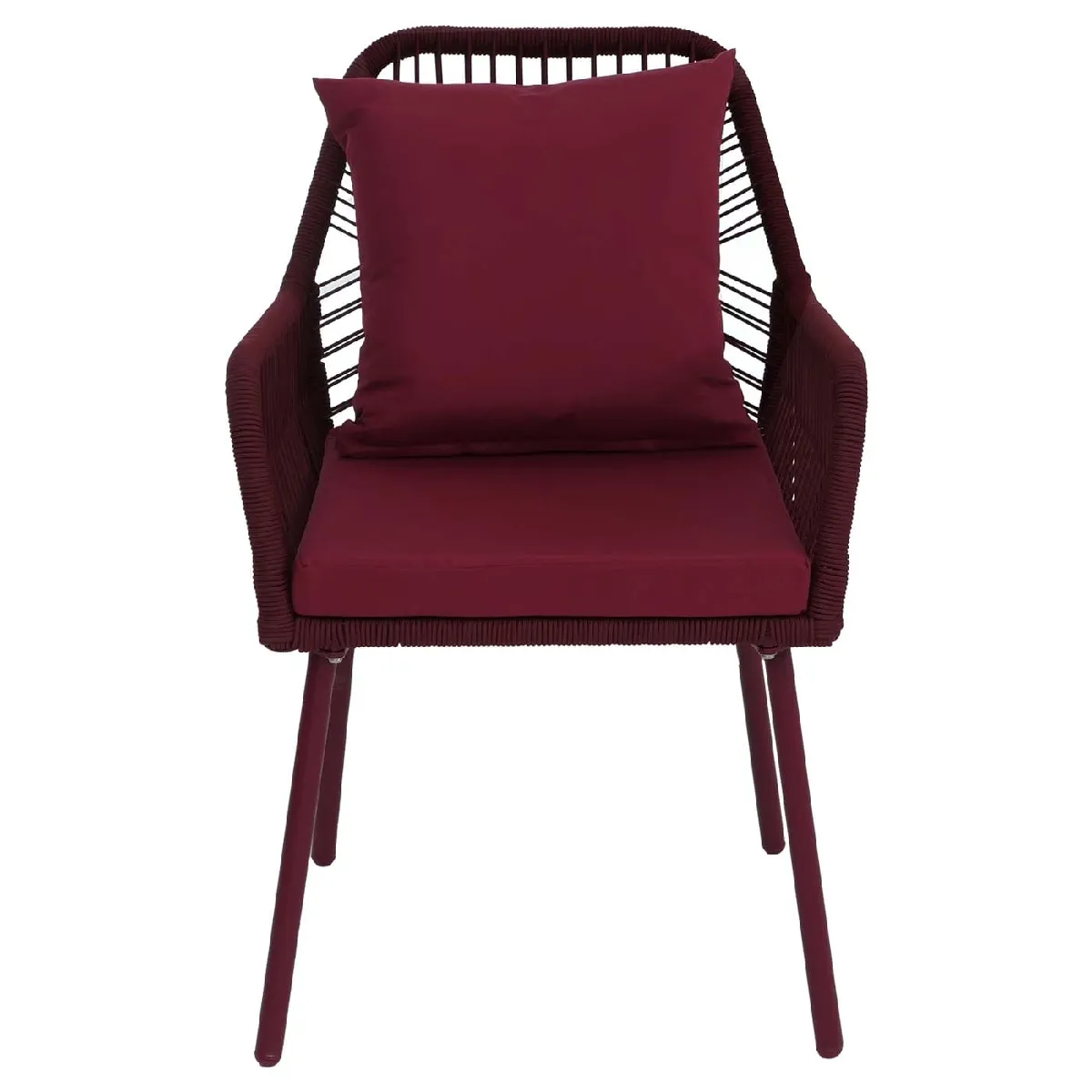 - Profitez d'un confort ultime avec notre chaise de jardin, qui allie harmonieusement style et fonctionnalité. Avec son tressage décoratif en corde, cette chaise n'est pas seulement esthétique, elle est également extrêmement résistante.