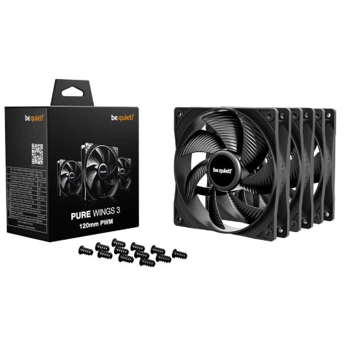 - Contenu : 3 ventilateurs be quiet! Pure Wings 3 120 mm (référence BL141), vis de montage incluses.