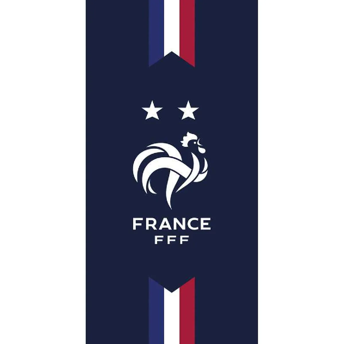 Serviette de plage officielle France Football (FFF) 150x75 cm, 100% coton 360 g/m², bleu marine imprimé - CTI