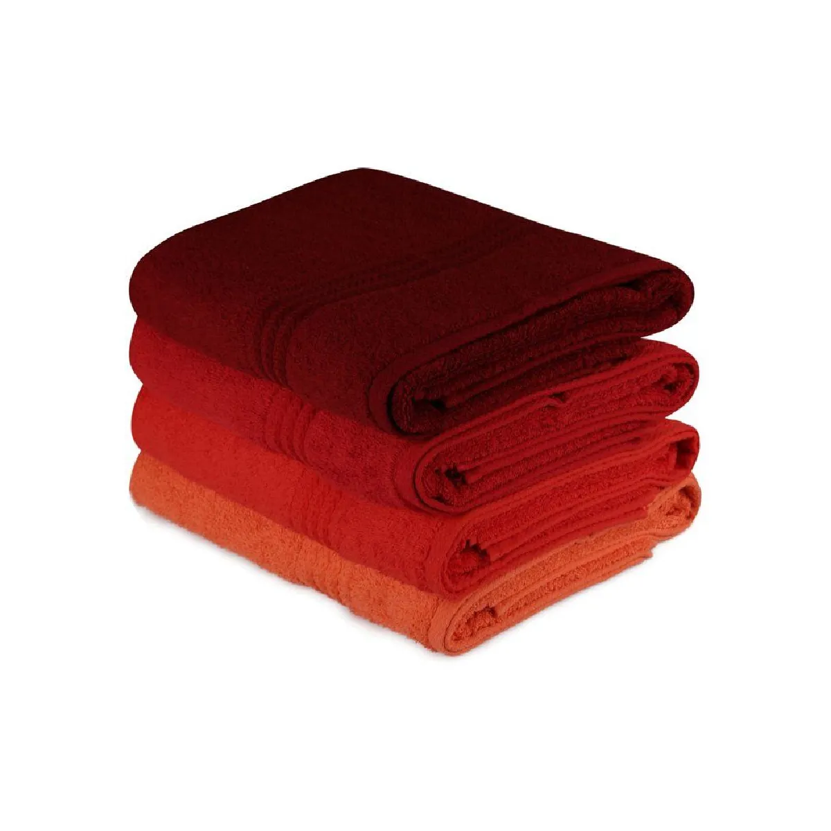 Set de 4 serviettes de toilette orange 100% coton éponge 70 x 140 cm - lot de 4, douce et très absorbante