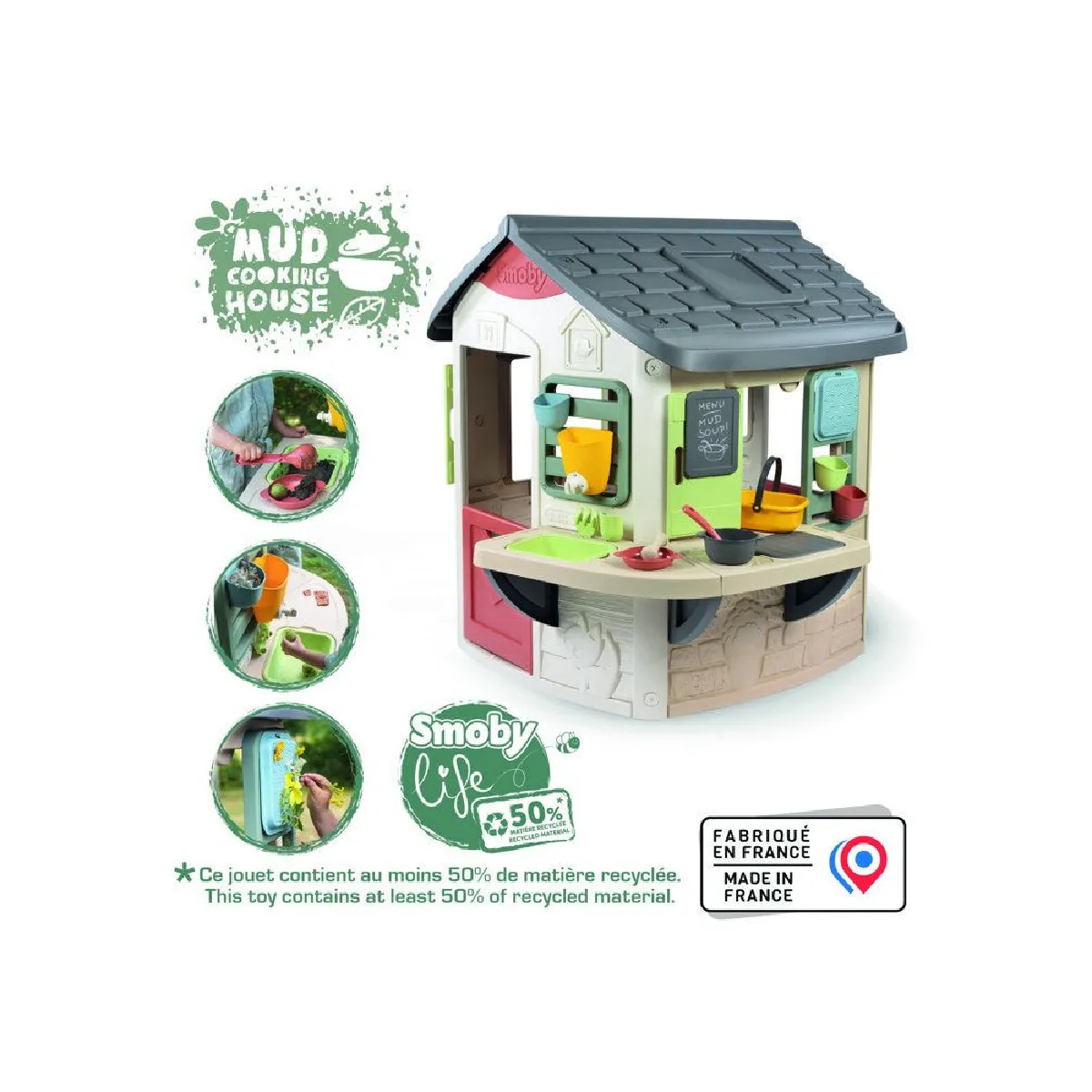 Smoby Maison Mud Cooking 16 accessoires - Maison de jeu 132x143x139 cm