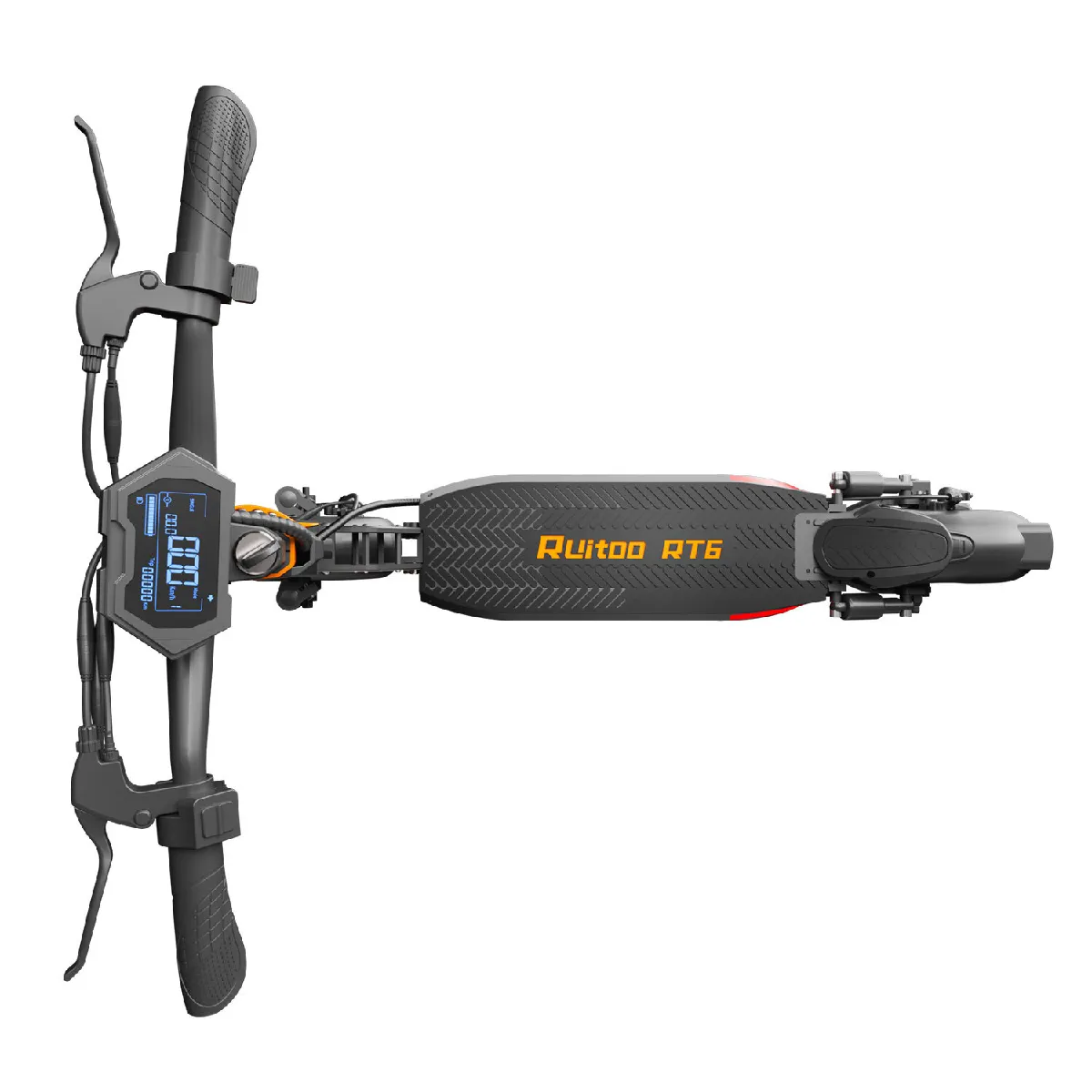 Avec un poids net de seulement 23,5 kg, le RT6 se distingue comme un scooter électrique léger dans sa catégorie. Son cadre pliable en alliage d'aluminium facilite le transport, le rangement et le chargement dans les transports en commun ou le coffre d'une voiture.
