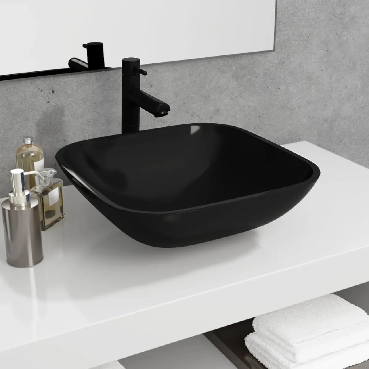Commentaire vendeur : vidaXL Lavabo Verre 42x42x14 cm Noir