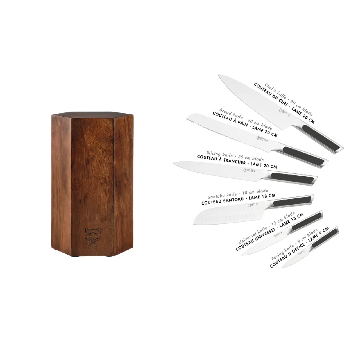 Que vous soyez un chef passionné ou un amateur de cuisine, le bloc couteaux IMATRA ne vous laissera pas indifférent grâce son style des plus minimaliste et sa forme hexagonale épurée.