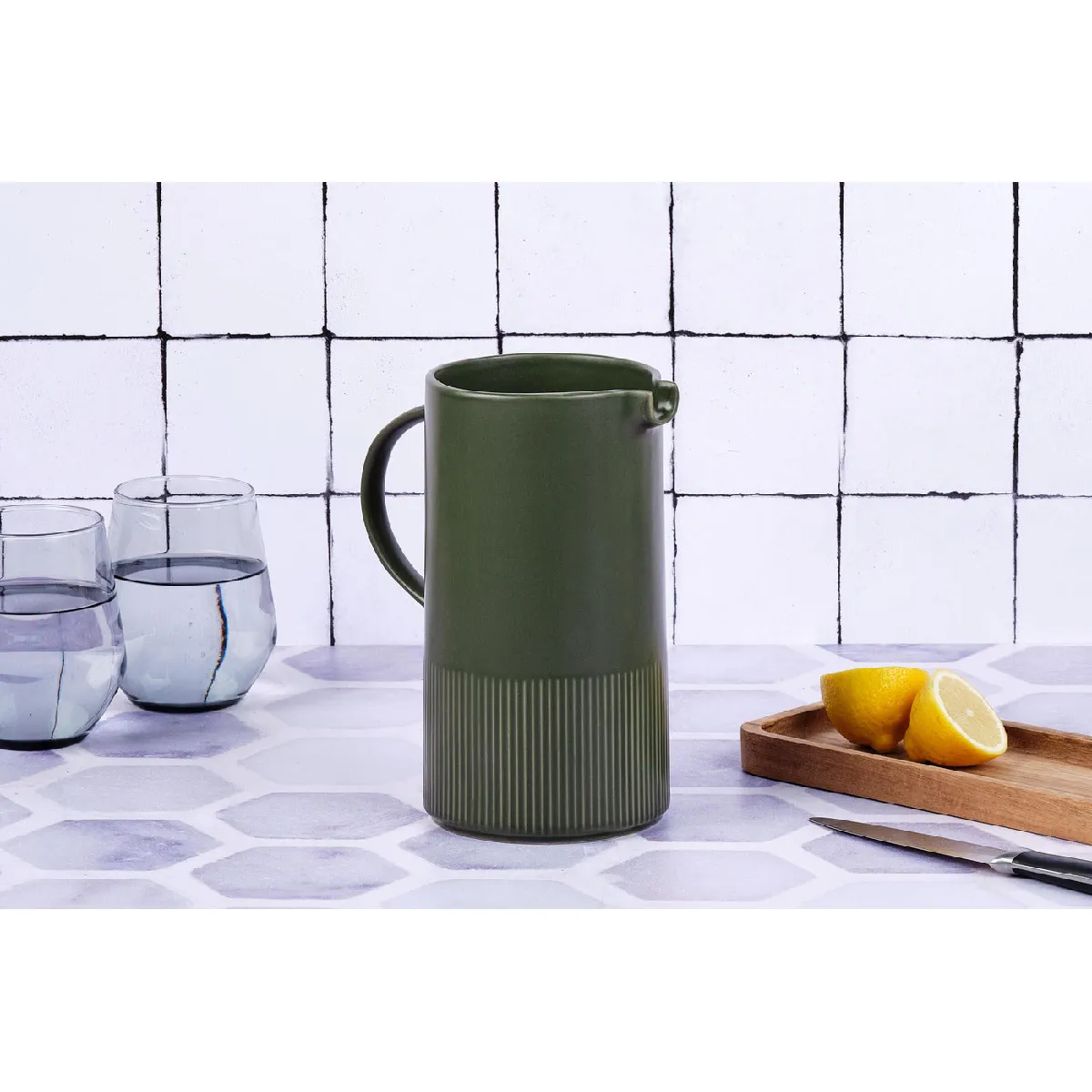 La carafe est un magnifique accessoire de table, conçu pour apporter une touche élégante et écologique à vos moments partagés en famille ou entre amis. D'une contenance généreuse de 1,5 litre, la carafe assortie à la vaisselle sera le petit plus qui ajoute une touche design à la décoration de table.