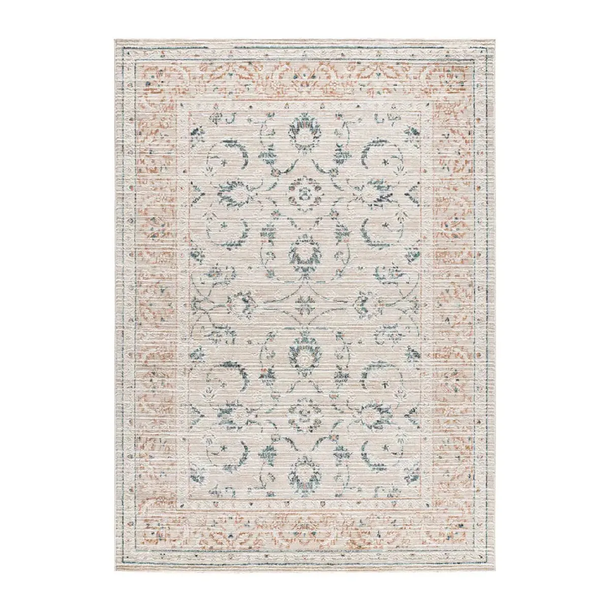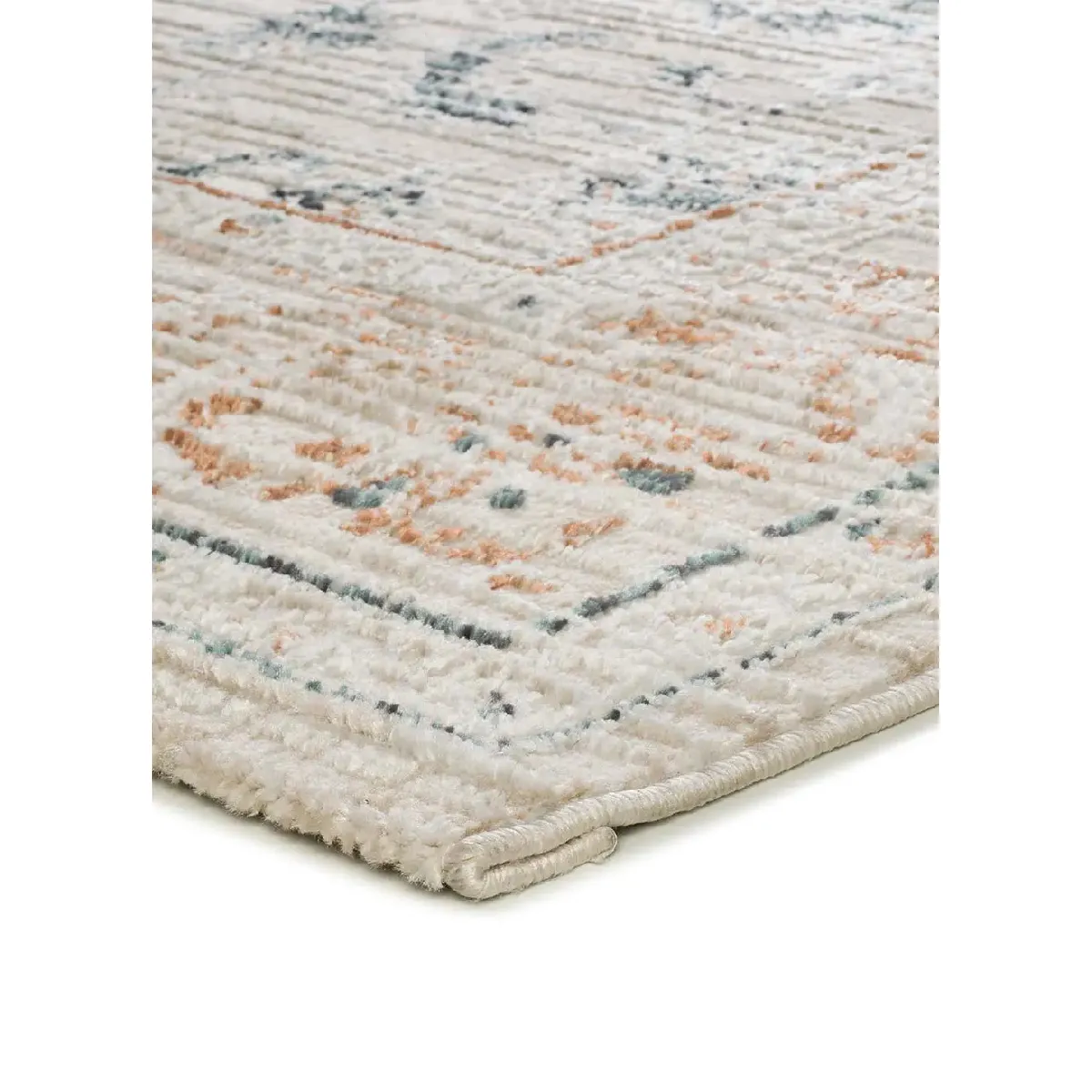 Le tapis vintage Keops associe tradition et modernité à travers un design ornemental délicatement patiné. Ses tons beige, terracotta et bleu créent un effet accueillant et élégant, idéal comme tapis de salon ou de chambre. Grâce à sa finition à effet brillant, le tapis offre différentes nuances tout au long de la journée.