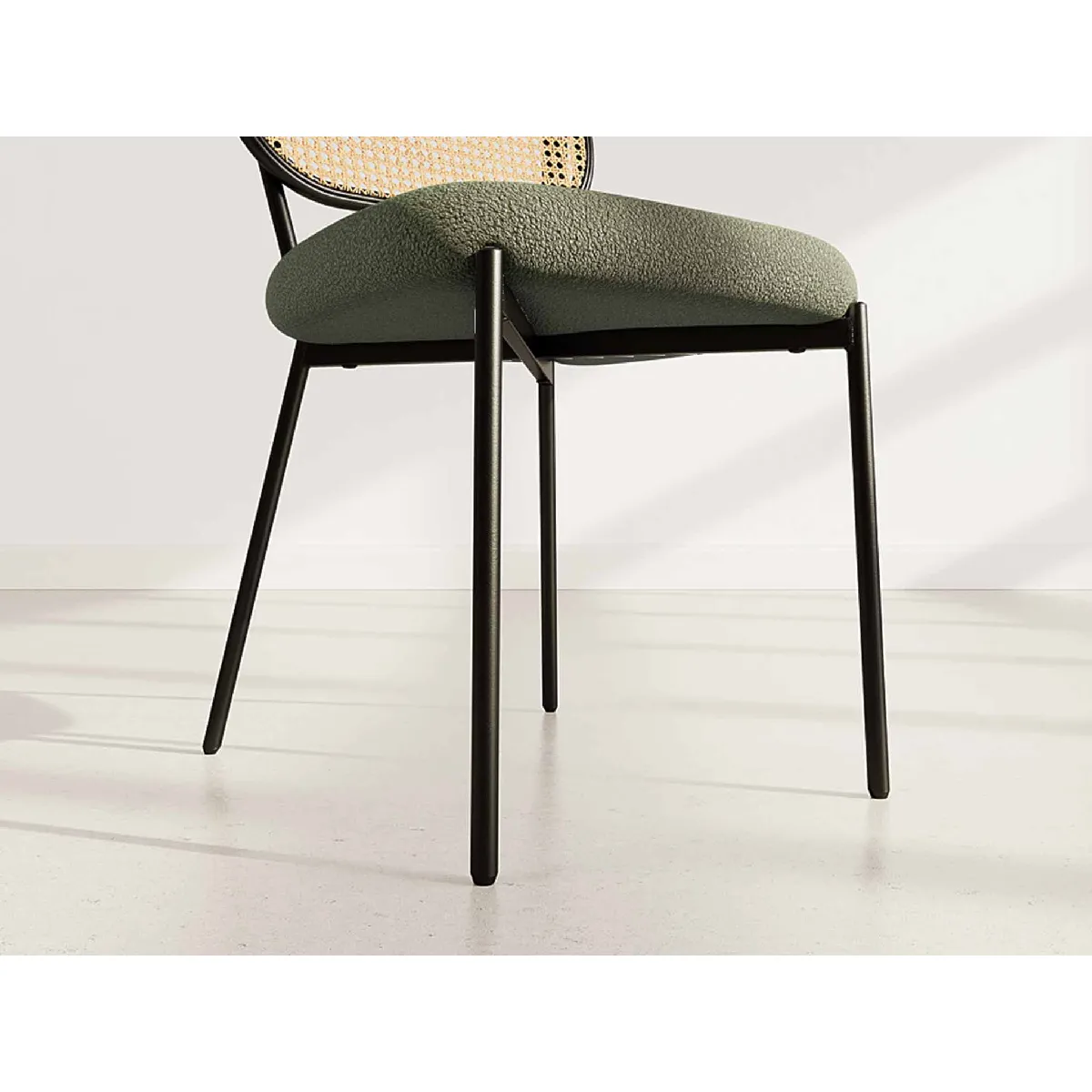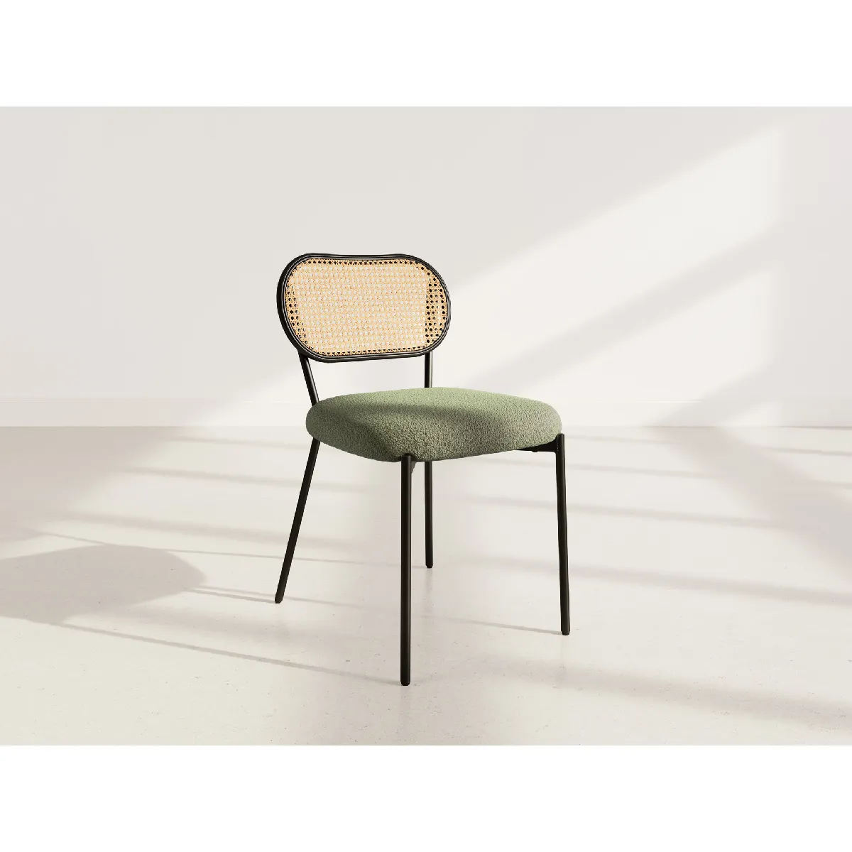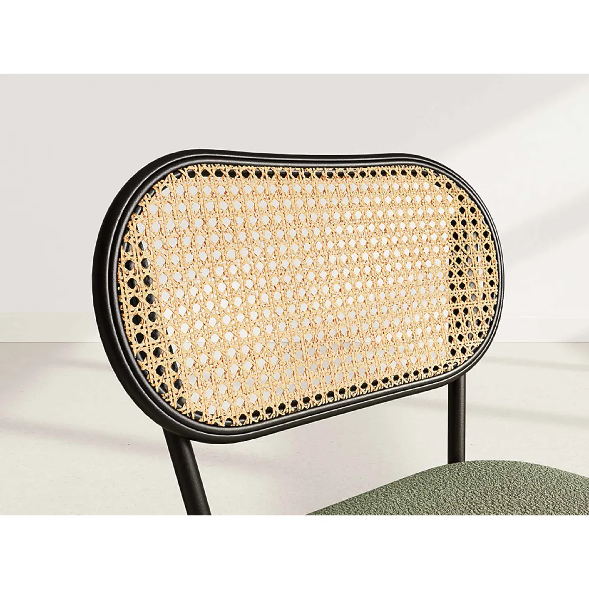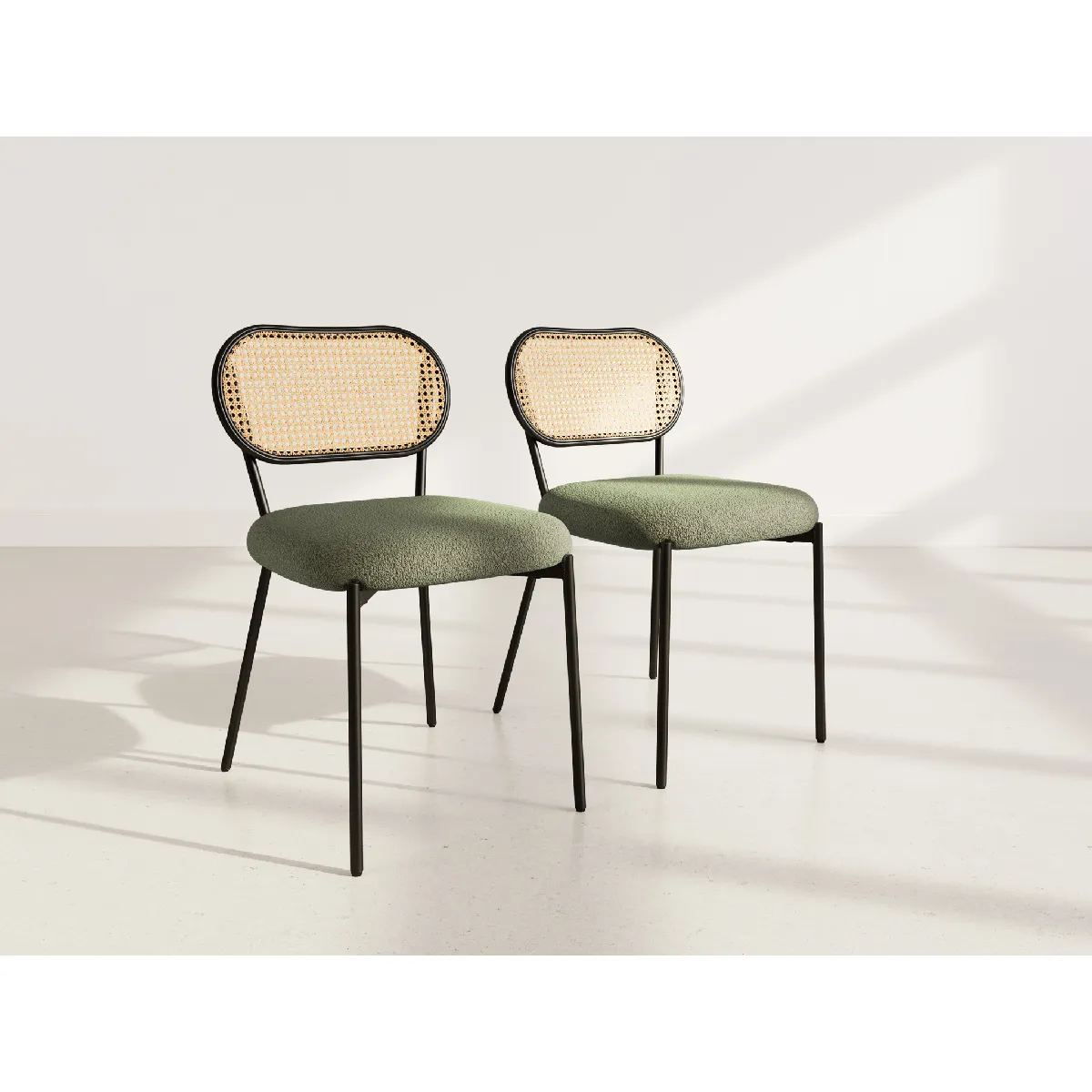 Luciano - lot de 2 chaises cannage - dossier arrondi - en tissu bouclette - Vert Kaki