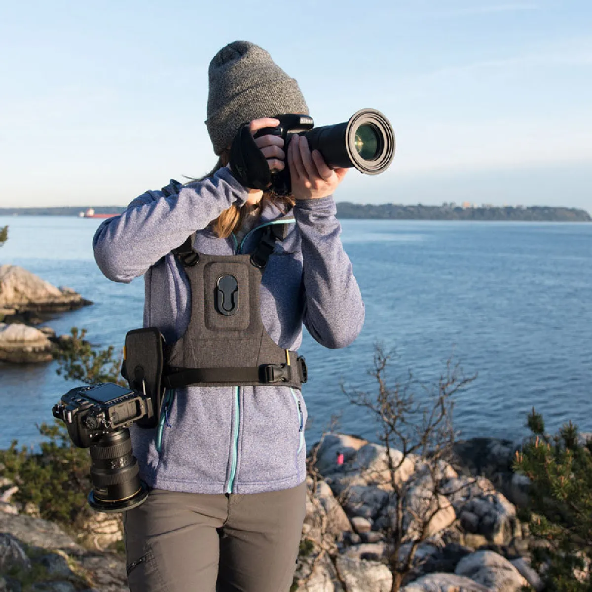 Contenu : 1 harnais G3 pour 1 boitier, 1 Holster seul pour un 2ème boitier, 1 housse anti-pluie, 2 attaches rapides aluminium anodisé avec rondelle caoutchouc, 2 vis acier inox, 2 sangles de sécurité avec anneau, 1 clé Allen..