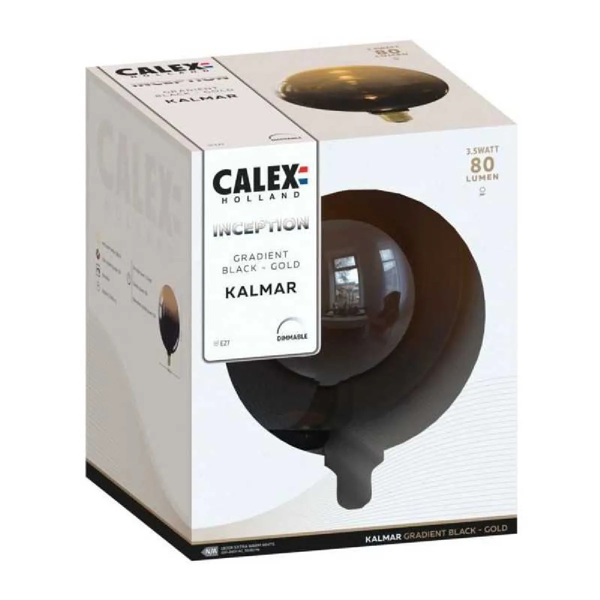 Ampoule LED décorative XXL Kalmar G125 verre noir-or dimmable E27 3,5W 80lm 1800K Calex