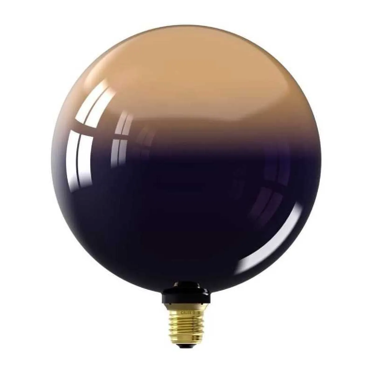 L'Inception Kalmar est une ampoule décorative LED au format G125 avec culot E27, conçue pour apporter une touche esthétique et chaleureuse aux éclairages d'intérieur. Sa grande sphère en verre de 20 cm affiche un dégradé noir vers or brillant pour un rendu visuel élégant et contemporain, idéale en suspension apparentée ou dans des luminaires décoratifs.