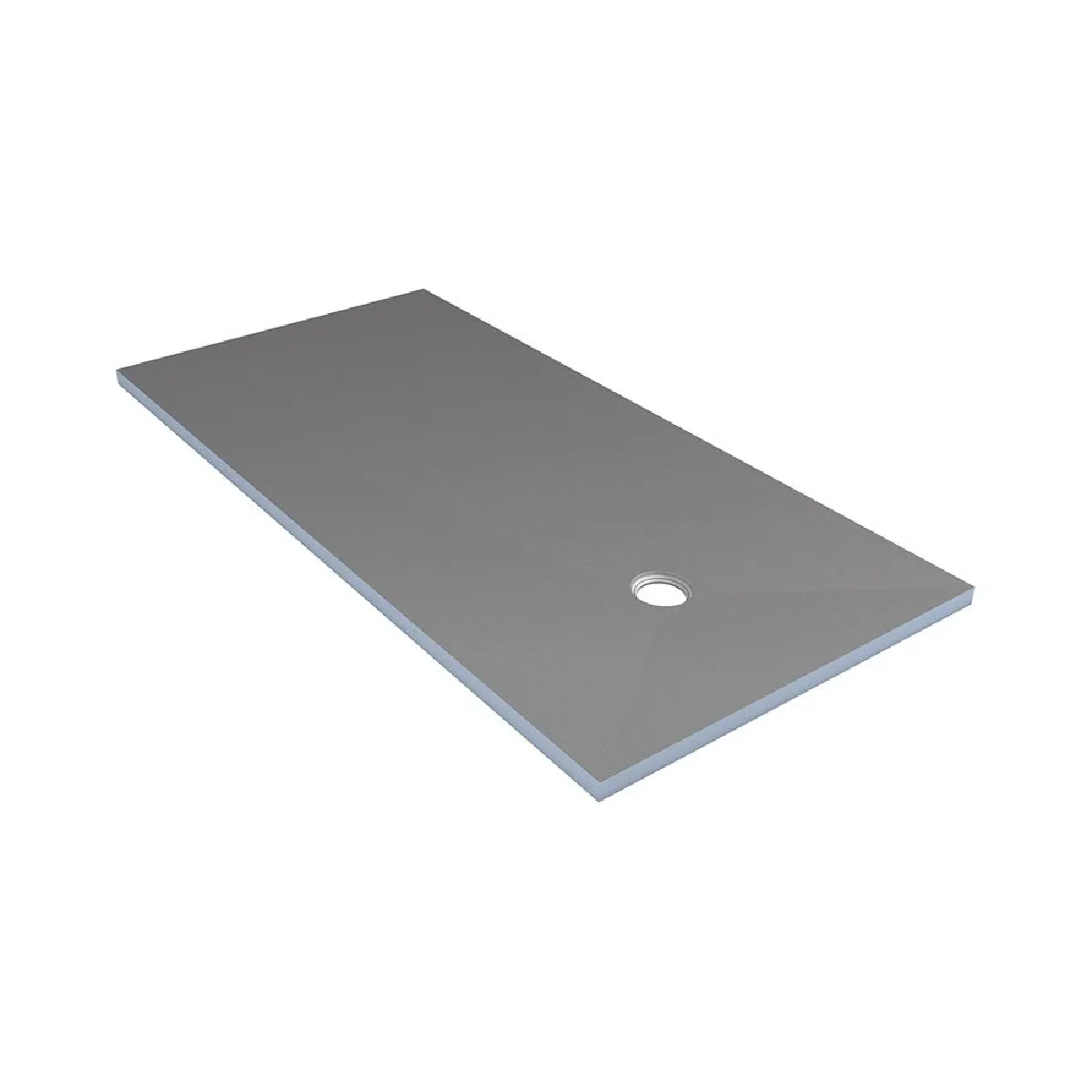 - Surface légèrement texturée, finition mate grise : adhérence améliorée et support pour le carrelage.