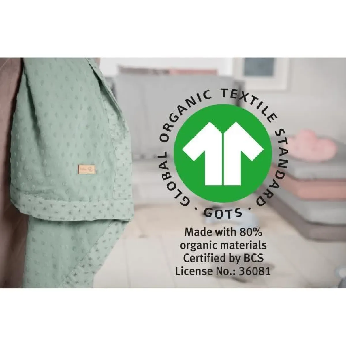 Couverture bébé bio ROBA Lil Planet 80x80 cm, certifiée GOTS, motif à pois, verte