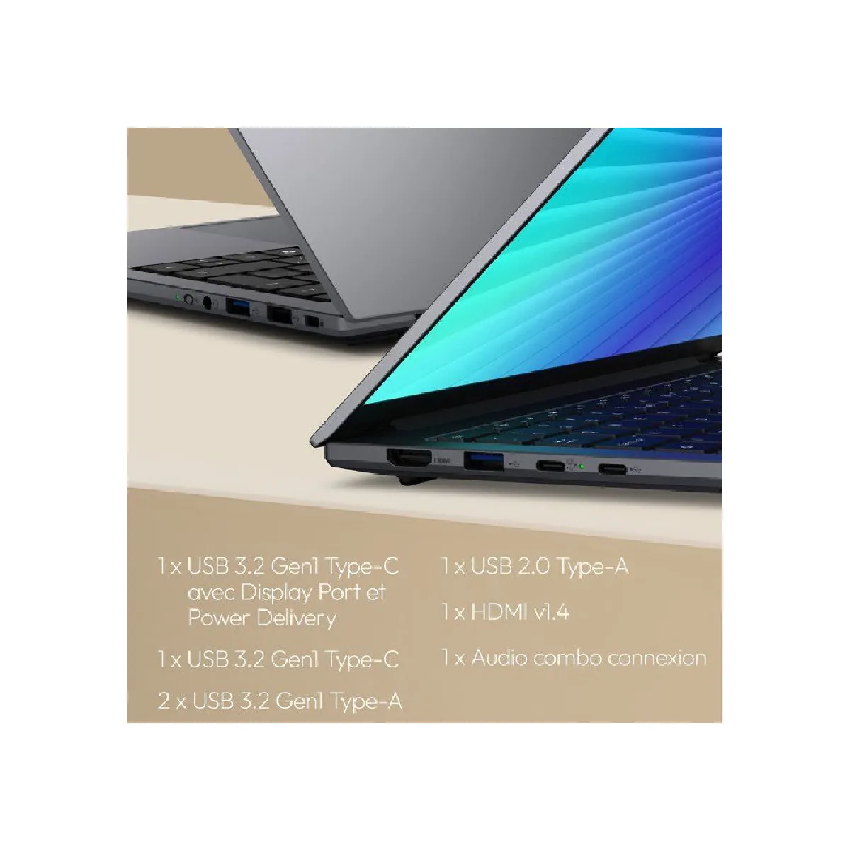 Le Signium 14 S1 est un ultrabook compact et léger pensé pour les utilisateurs mobiles exigeants. Son châssis gris métallique, son poids d'environ 1 kg et son profil fin en font un compagnon facile à transporter, tout en proposant des composants adaptés à la productivité et à la création multimédia.