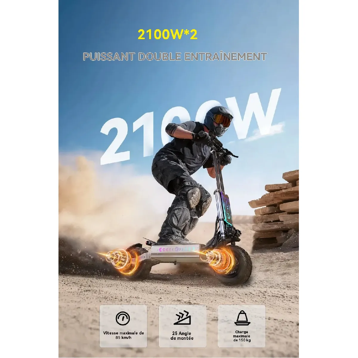 Trottinette Electrique Pliable OOTD T90- Moteur 4200W(2100W+2100W) - Batterie 60V 31.2Ah |
