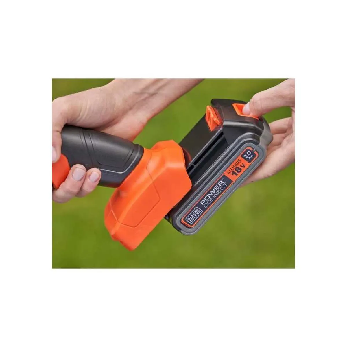 - Marquages visibles : logo BLACK+DECKER; marquage 18V et POWER CONNECT sur la batterie
