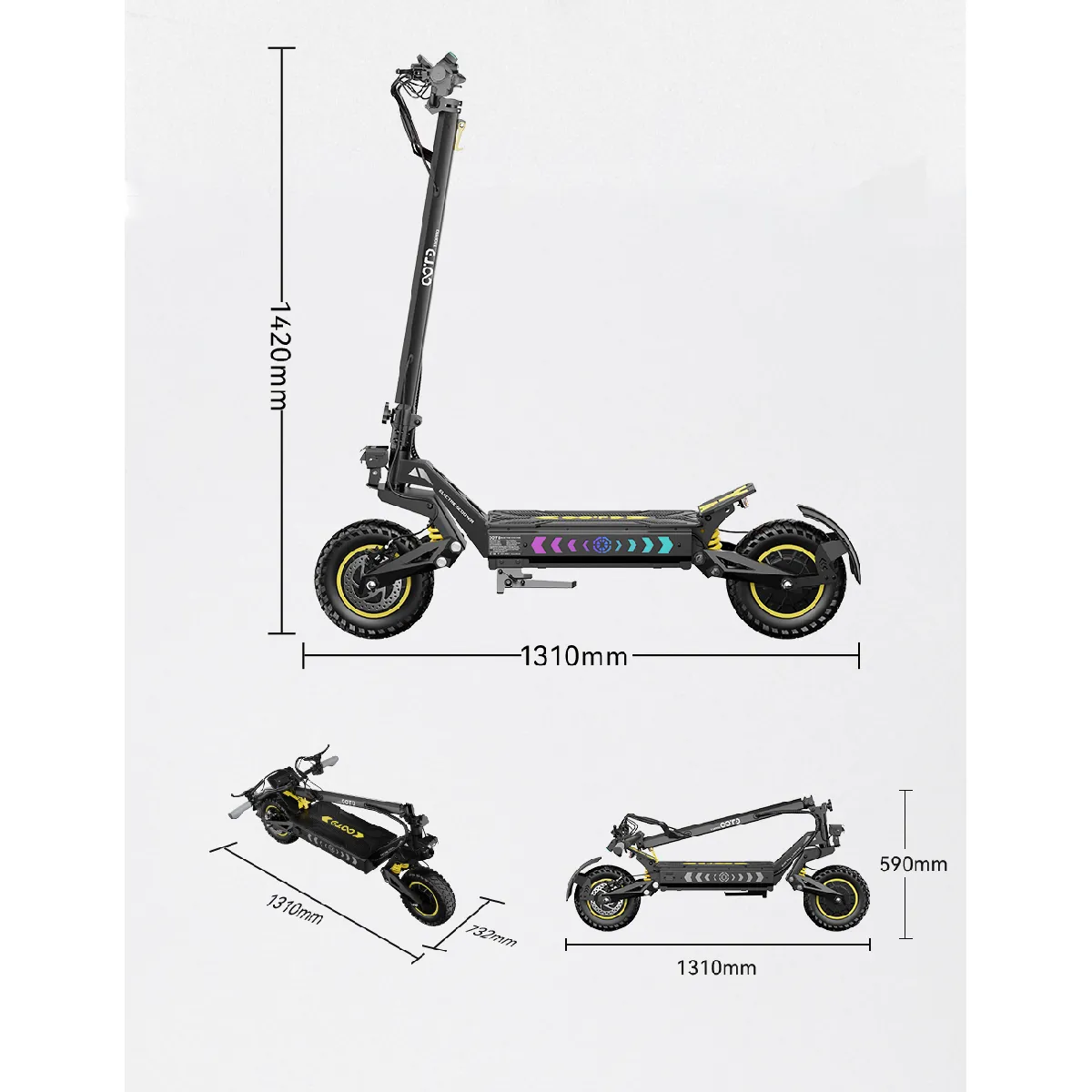 Le système de freins à disque hydrauliques offre un freinage précis et puissant, garantissant la sécurité de la conduite. La plage de taille adaptée (160-200cm) et la charge maximale de 150kg conviennent à la plupart des utilisateurs. L'écran LCD affiche clairement les données de conduite, avec une manipulation intuitive et facile à maîtriser ; l'absence de liaison Bluetooth et d'APP rend l'utilisation plus simple et sans tracas. Appuyez trois fois successivement sur le bouton de lumière pour basculer les effets de lumière ambiante, combinant praticité et esthétique, et améliorant la visibilité pendant la conduite nocturne. Les garde-boue en plastique empêchent efficacement l'éclaboussure de boue et d'eau, avec des détails de conception améliorant le confort de conduite.