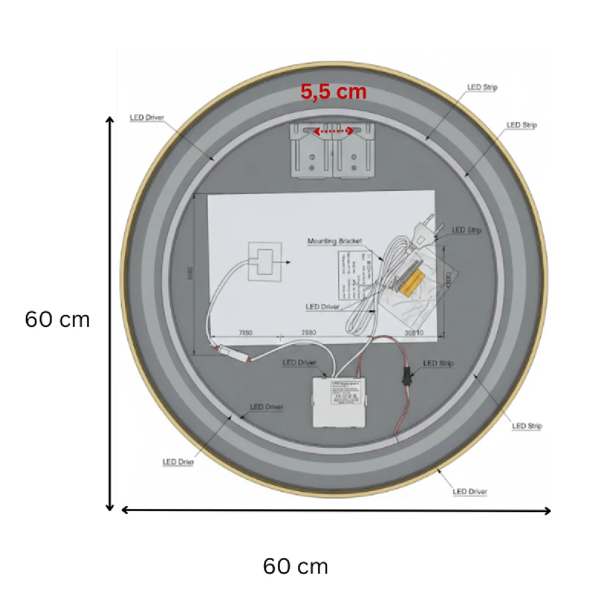 OTITEC Miroir LED rond - 60 x 60 cm - Éclairage LED en façade - LUMIA |