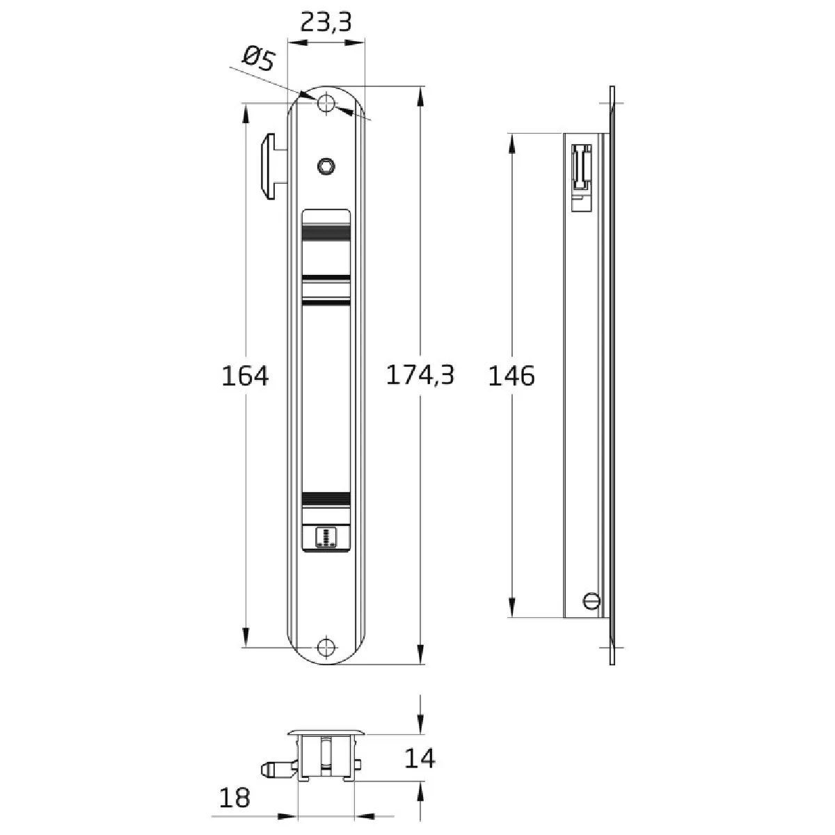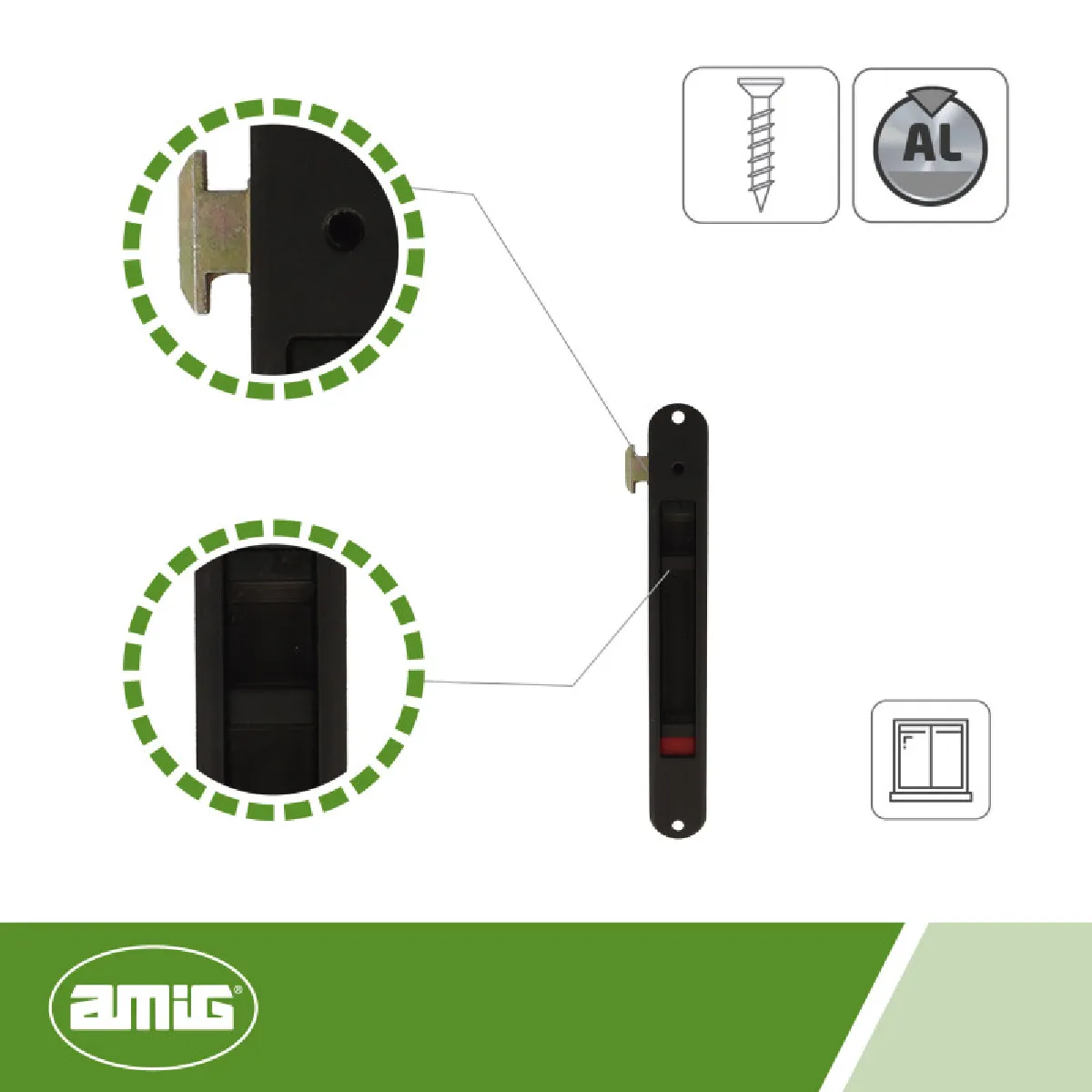 AMIG | Fermeture à encastrer 3650 | 174 x 23 mm | Aluminium | Noir |