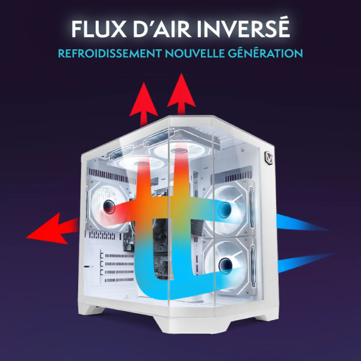 Le VTX-8 blanc offre un style audacieux et des performances efficaces dans un format compact. Équipé de ventilateurs RVB Infinity de 120 mm et dun magnifique panneau frontal RVB à miroir infini, il apporte un éclairage vibrant et un flux dair performant à votre configuration. Son design gain de place le rend parfait pour des builds épurés et minimalistes, sans compromis sur lesthétique ni la fonctionnalité. Le VTX-8 blanc est un choix remarquable pour les gamers qui recherchent puissance et personnalité dans un format réduit.