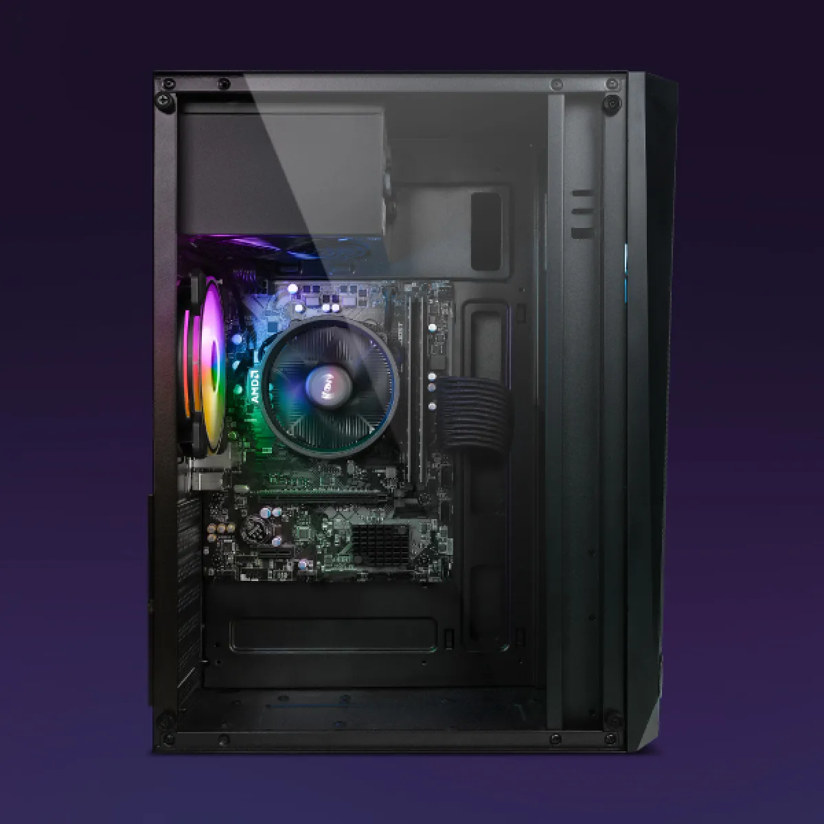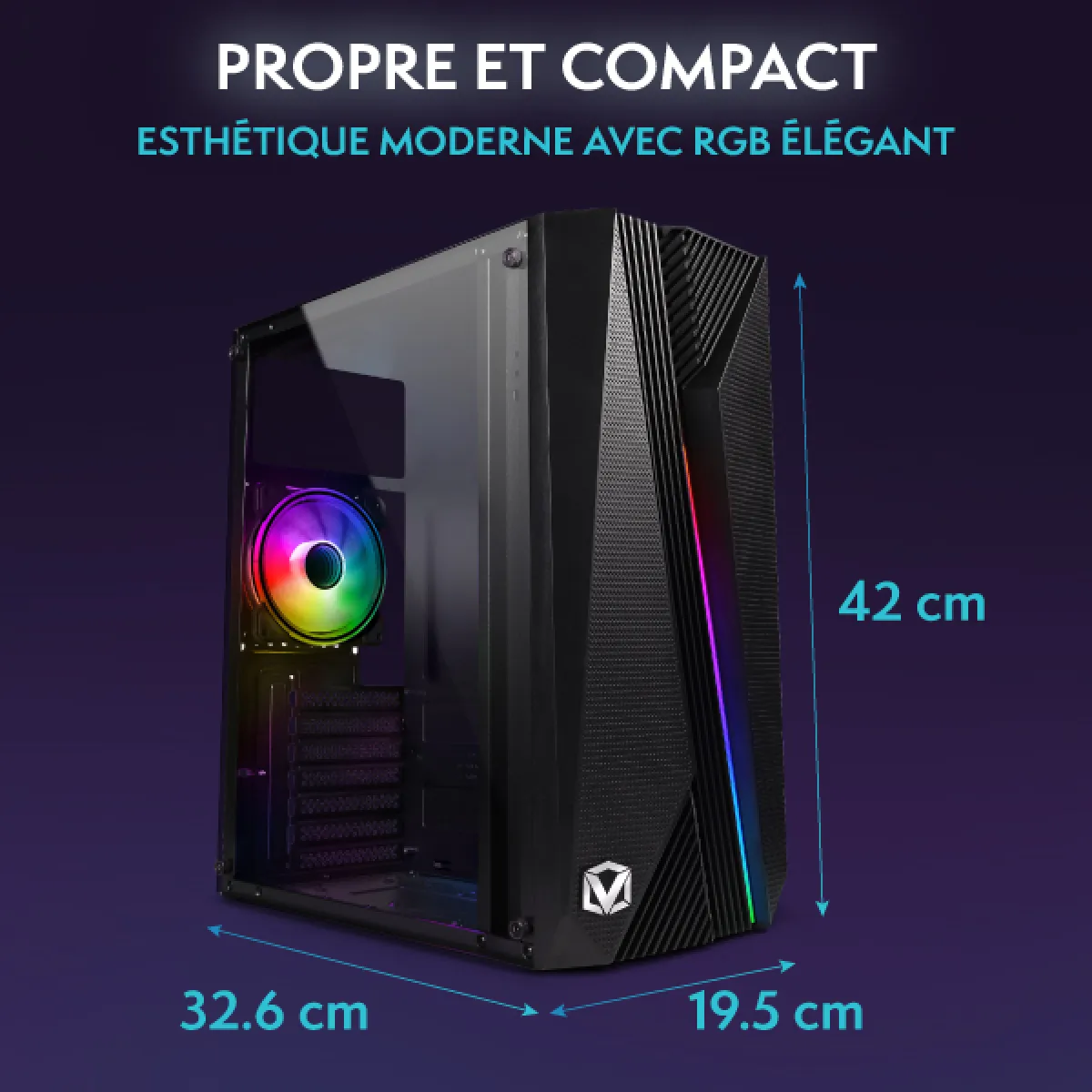 Le VTX-1 noir est une tour ATX compacte et élégante, conçue pour les gamers qui apprécient un design épuré et des performances fiables. Il est équipé dun ventilateur RVB Infinity de 120 mm offrant un éclairage vibrant et un flux dair efficace, complété par une discrète bande lumineuse RVB sur le panneau avant. Avec son agencement optimisé pour gagner de la place et sa finition noire minimaliste, le VTX-1 noir allie style et fonctionnalité sans encombrement.