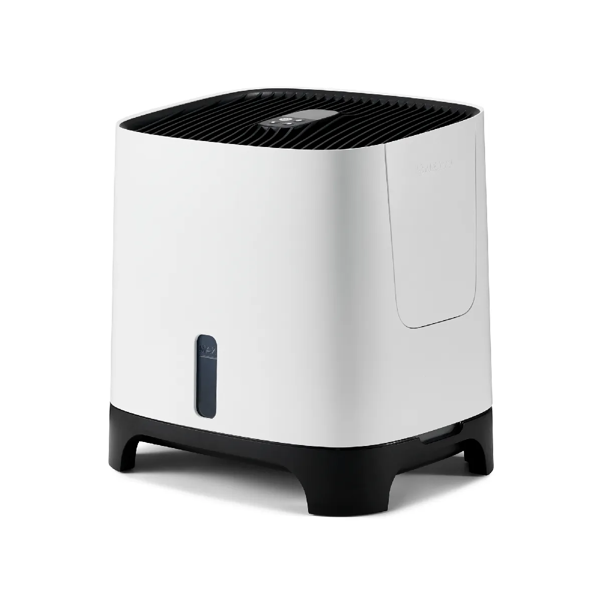 Sans brume ni residus il evite la condensation et les surfaces humides. Il regule automatiquement le niveau d humidite. Il fonctionne avec de l eau du robinet meme dans les zones a eau dure.