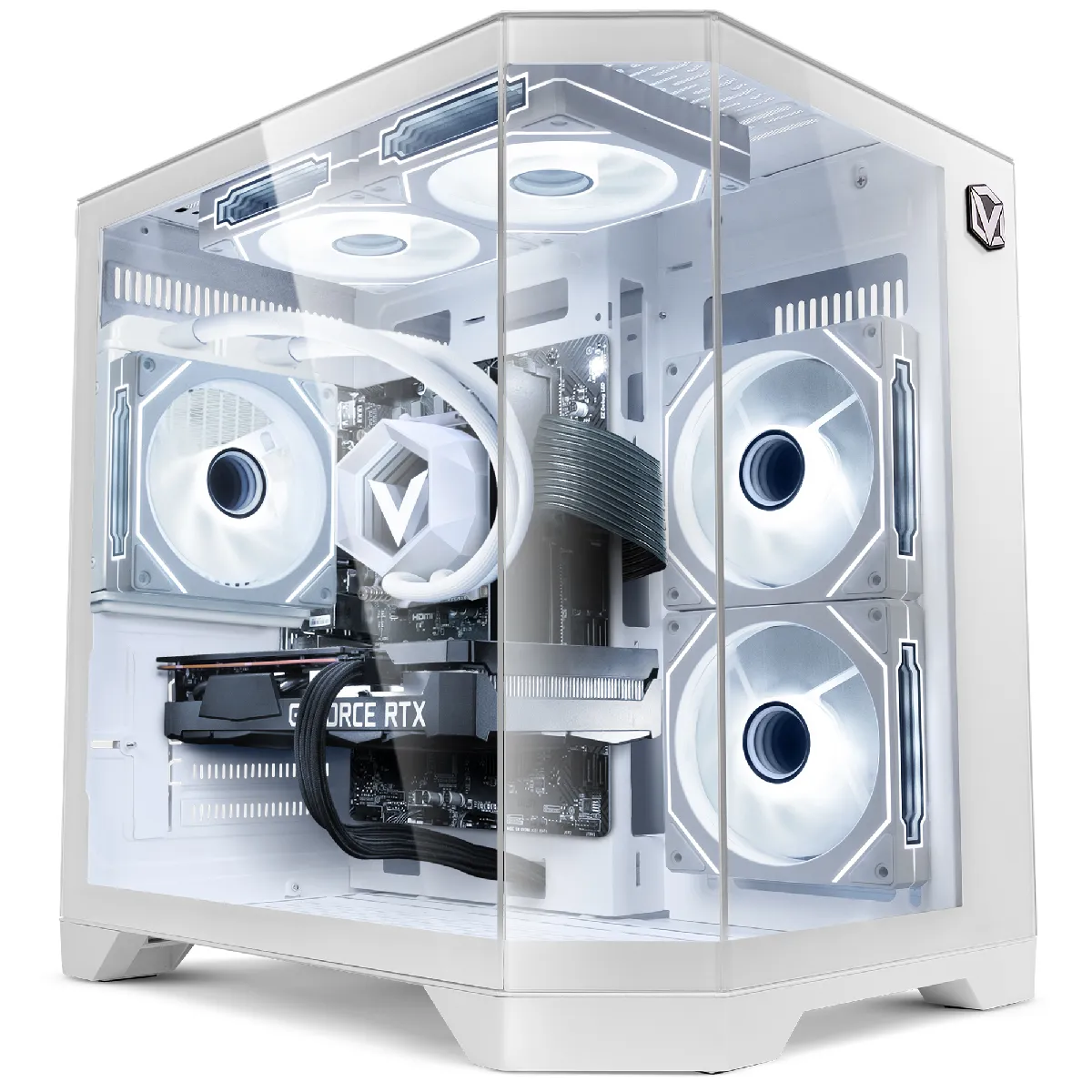 Boîtier: Boîtier gaming Vibox VTX-8 Blanc avec vue panoramique et double façade en verre pour un look élégant et moderne