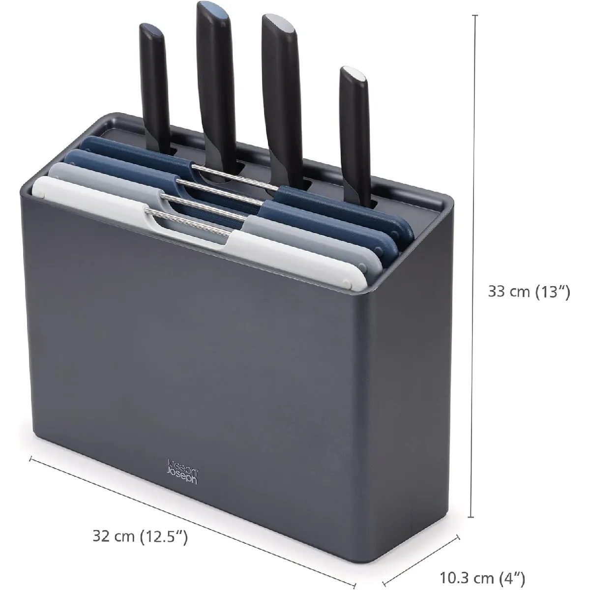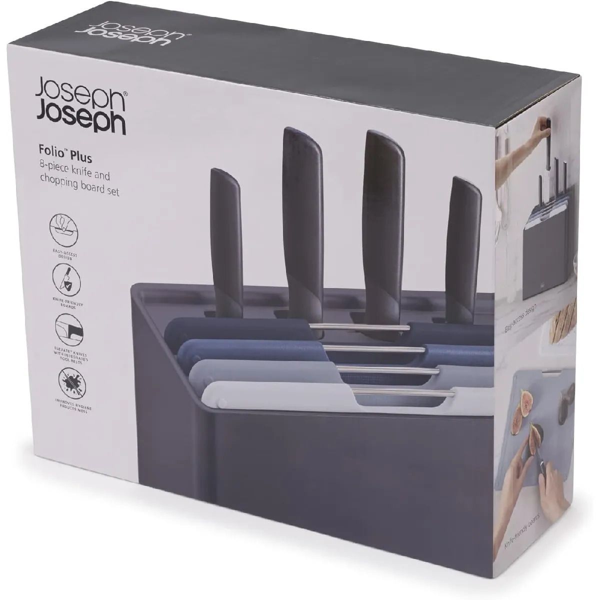 Joseph Joseph Jeu de couteaux et planche à découper Folio Plus 8 pièces, antidérapants, gris |