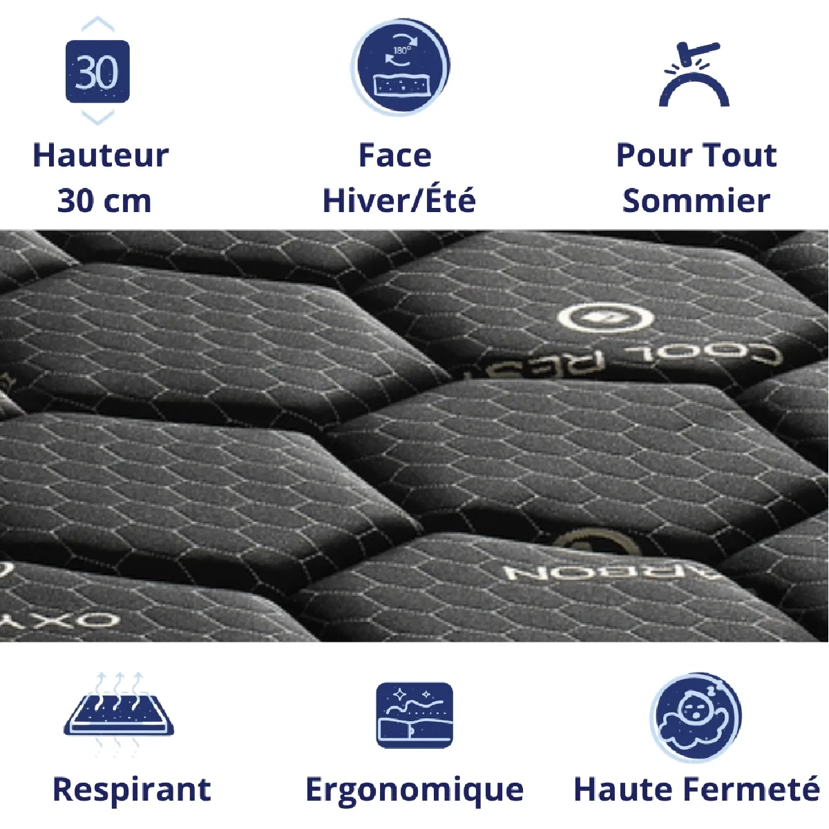 Dagostino Home présente l'incroyable matelas "Obsydion", ce matelas enroulé sous vide d'une esthétique parfaite, d'une haute fermeté, d'une respirabilité/aération et durabilité maximale a été créé pour un niveau de confort optimal. C'est un matelas de 30 cm de hauteur qui s'adapte à votre corps et garantit le soutien de toutes les parties de votre corps. Nous proposons des produits fabriqués à partir de matériaux de haute qualité et aux finitions soignées. Vous trouverez dans le matelas Obsydion, uniquement des matériaux de haute qualité. Son noyau en mousse vous garantit un niveau de confort optimal, ferme et robuste dans le temps ce qui vous fournira une excellente sensation de couchage. Ce matelas non déhoussable est un produit avec double face spécial pour les mois d'été/hiver. La face d'hiver a un tissu stretch jacquard. La face d'été dispose d'un tissu 3D. Les produits doivent être déballés au plus tard dans les 14 jours pour ne pas perdre leur garantie.