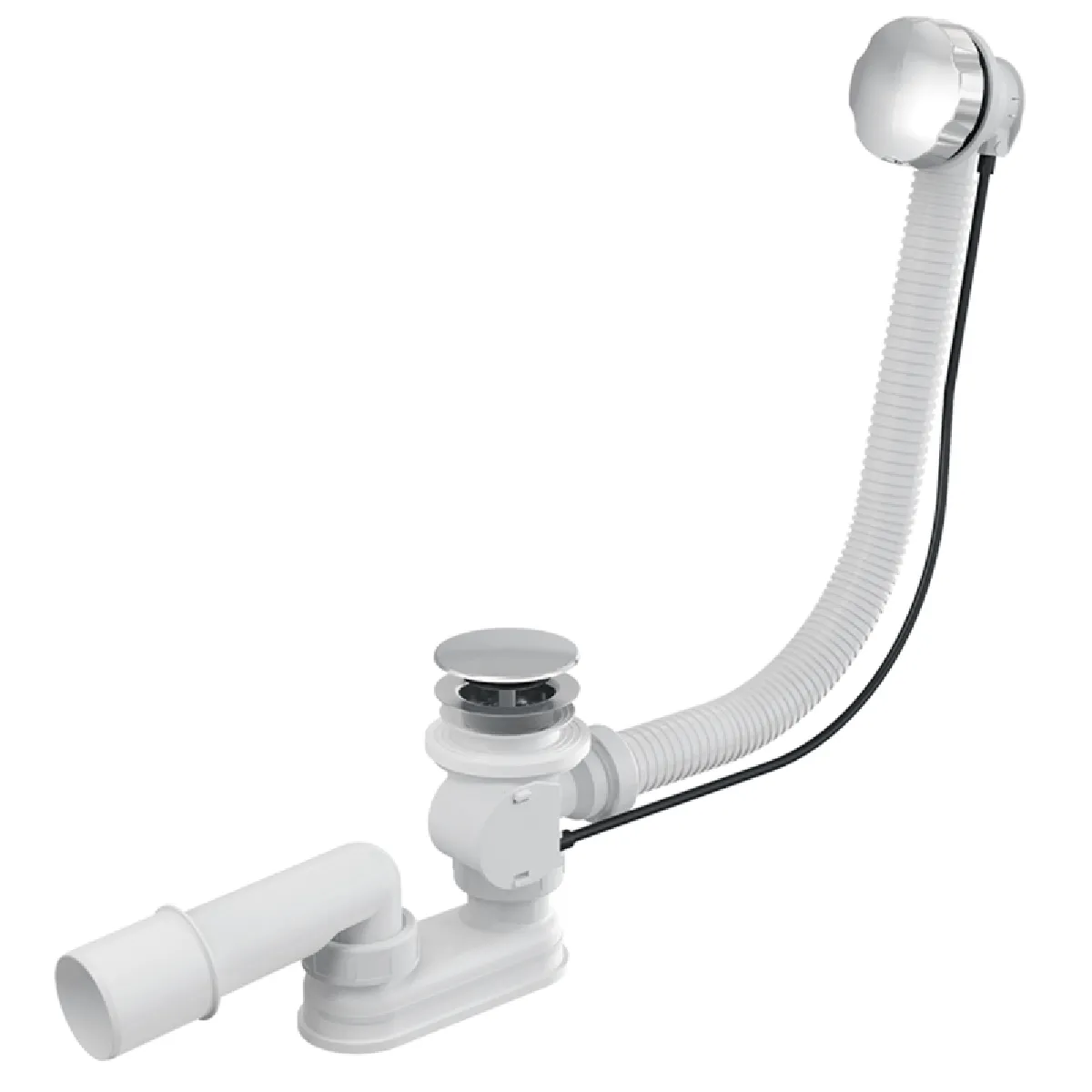 Vidage baignoire avec trop-plein - Bonde chrome - Flexible