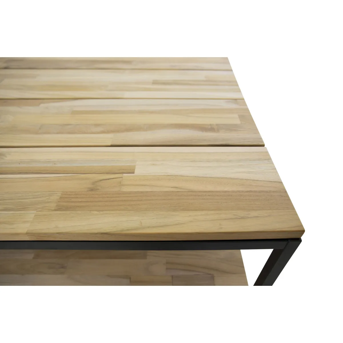 Commentaire vendeur : Informations Techniques : Dimensions : L. 80 x l. 80 x H. 40 cm Matières : Bois (Teck) & Acier Spécificités : Naturelle & Robuste Table basse carrée Plateau en bois Nombre de colis : 2 Poids max supporté : 40 kg Poids : 26,36 kg Couleur : Naturel
