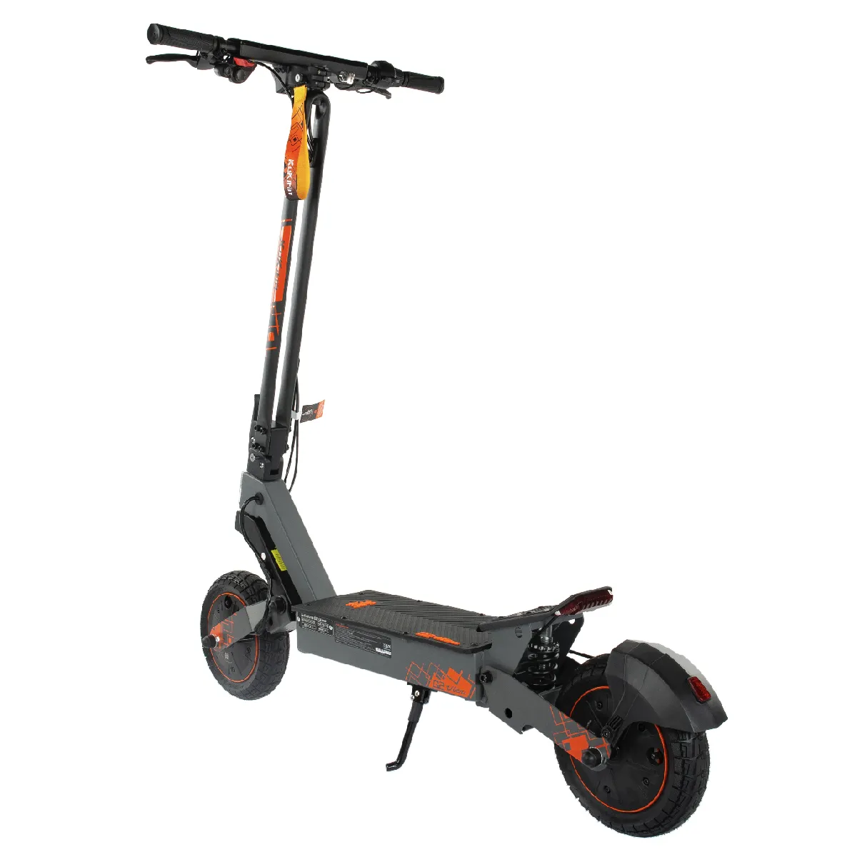 Equipé dun système damortissement à ressort double bras avant et arrière (1800 livres), il absorbe efficacement les irrégularités du terrain, offrant une conduite confortable même sur des chemins caillouteux. Ses pneus à vide 10 pouces (10*2.75-6.5) avec une pression optimale de 220-230kpa assurent une adhérence maximale, tandis que son châssis mixte acier-aluminium allie solidité (120kg de charge max) et légèreté (31kg net).
