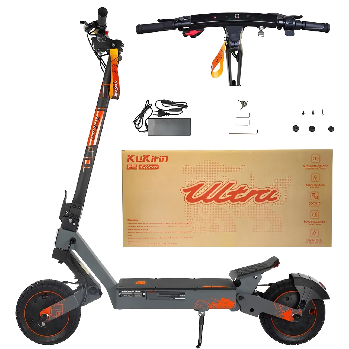 Commentaire vendeur : Le KuKirin G2 Ultra est un scooter électrique performant et polyvalent, équipé de deux moteurs 800W pour une puissance totale de 1600W et une vitesse maximale de 50km/h. Sa batterie 48V 18Ah offre jusqu’à 55km d’autonomie. Il dispose d’un double amortissement, de pneus 10 pouces, de freins à disque, d’un éclairage LED complet et d’un écran tactile LED. Étanche IPX4, solide et pliable, il allie puissance, confort, sécurité et praticité pour une utilisation urbaine et tout-terrain.