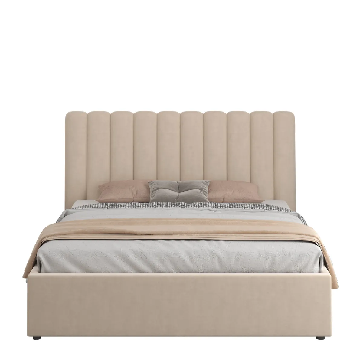 Concept Usine Lit avec coffre de rangement 140x190cm velours beige SAVANNAH |
