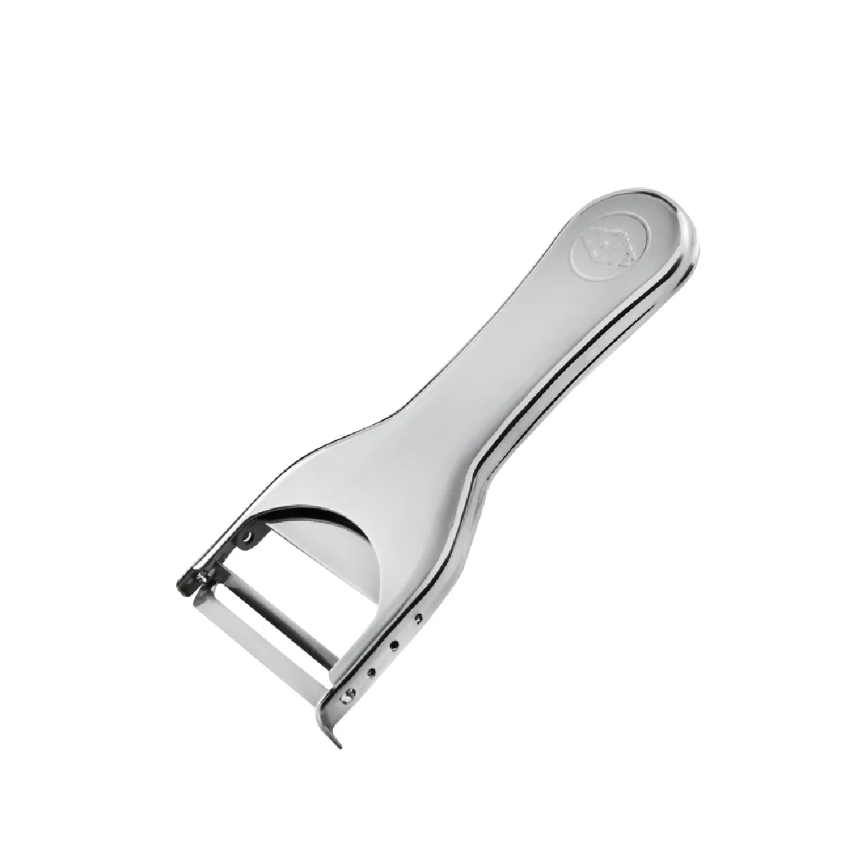 Éplucheur en acier inoxydable IPAC, conçu pour un usage professionnel et grand public. Lame fine et tranchante en inox pour un épluchage précis limitant le gaspillage, manche ergonomique en inox poli pour une prise en main confortable et une durabilité élevée. Dimensions compactes (14 x 5 x 1 cm) facilitant le stockage et la présentation en catalogue. Valeur ajoutée : robustesse, hygiène, entretien facile (résistant à la corrosion).