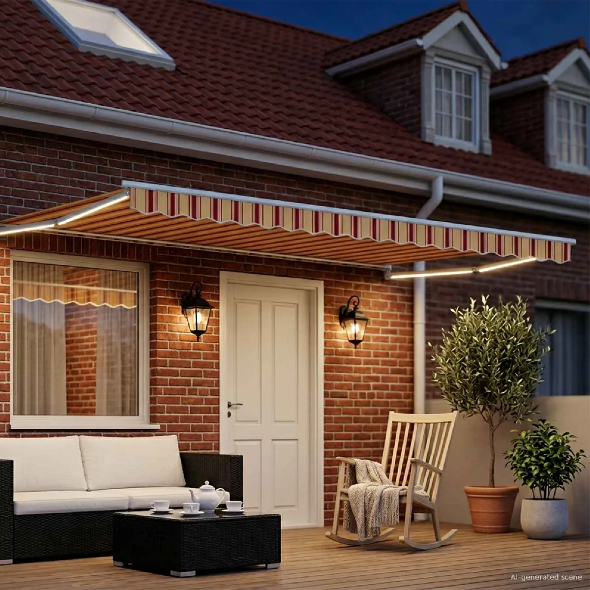 - 1 x Auvent rétractable électrique avec LEDs et capteur météo