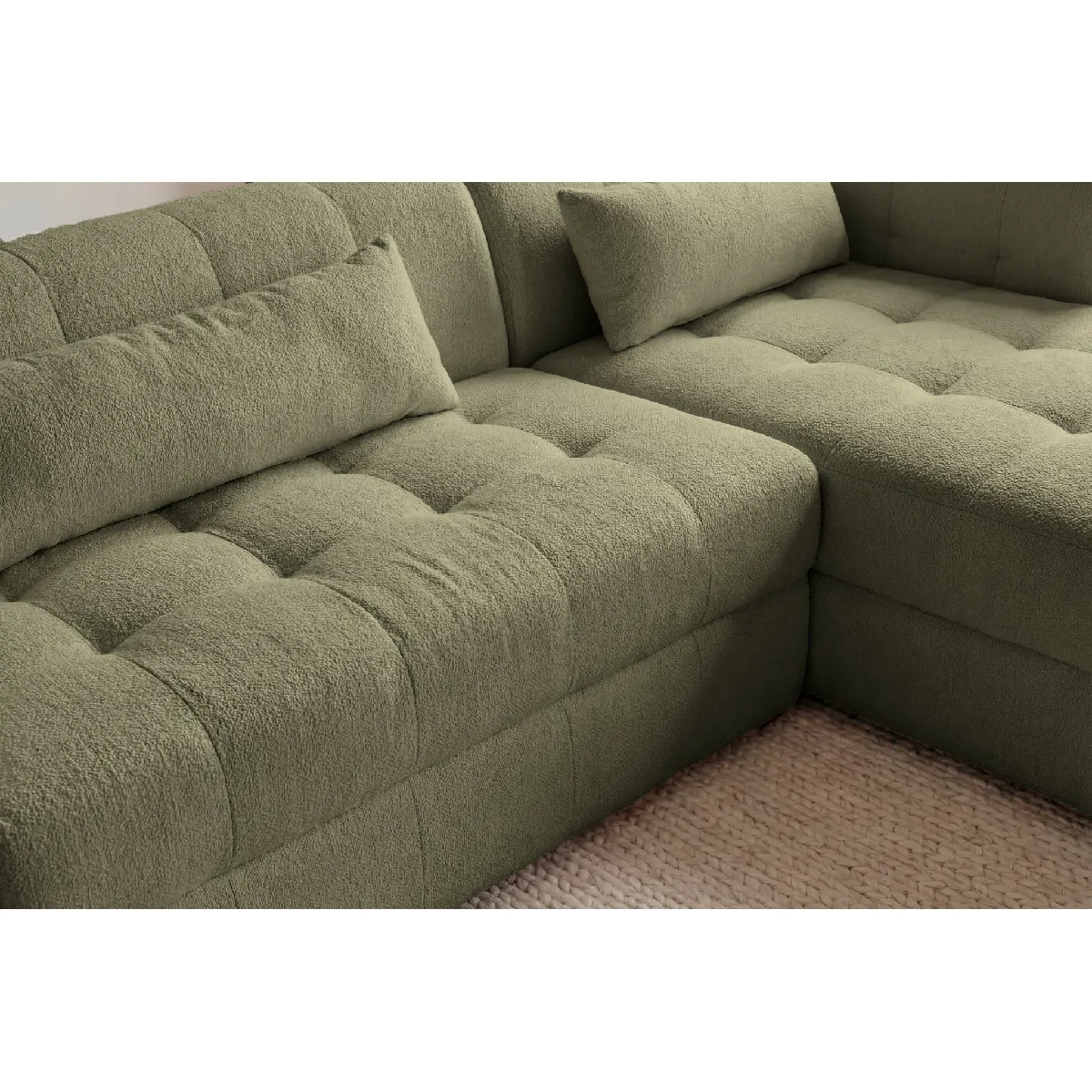 ARLETTE - Canapé d'angle tissu chenille 4 places Gauche - Vert