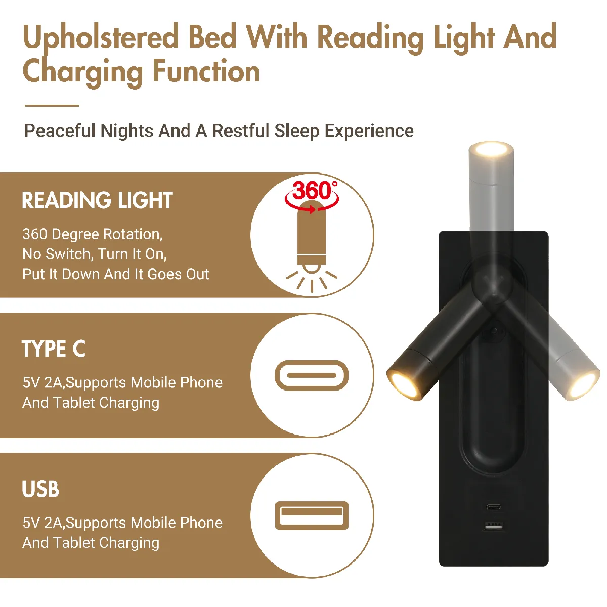 lampe de lecture avec ports usb et type-c